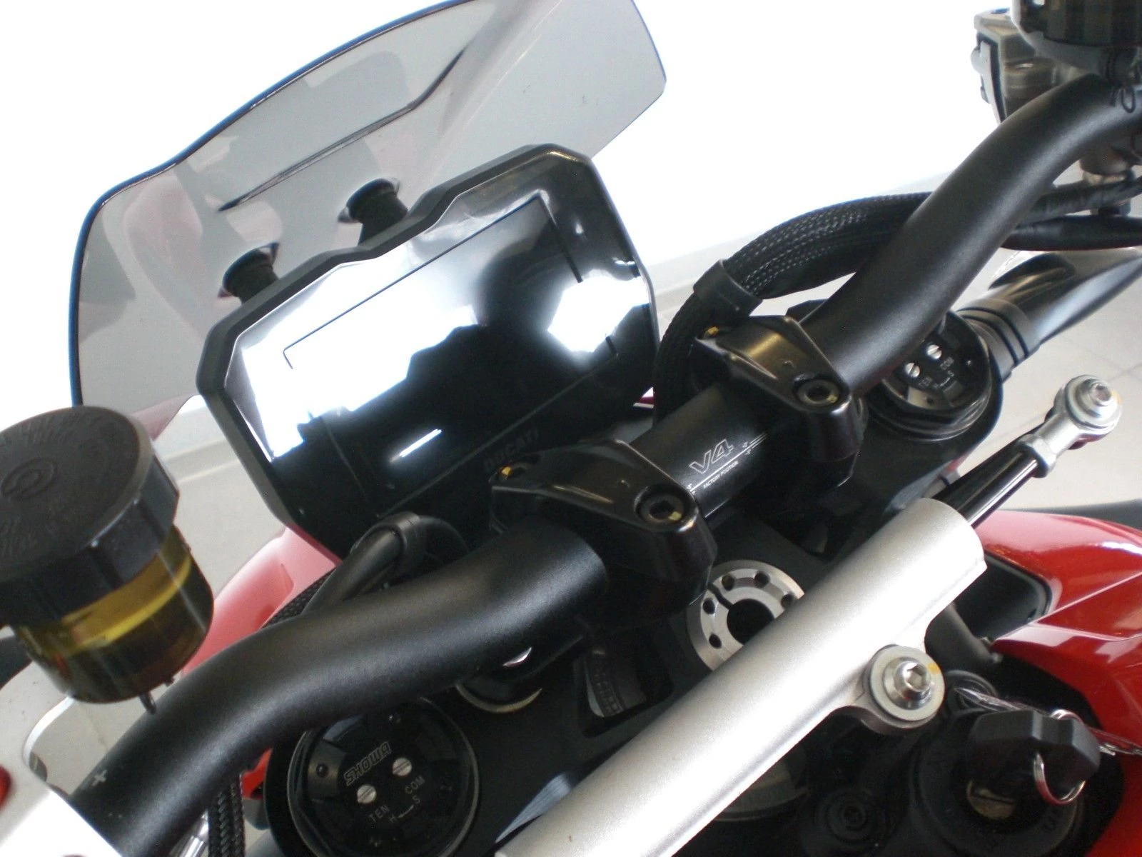 sehr gepflegter V4 aus 1.Hand(KEIN Vorführer), unfallfrei und scheckheftgepflegt, 3 Riding Modes, Power Modes, Bosch Kurven ABS Evo, Traktionskontrolle(DTC Evo II), Wheelie Kontrolle(DWC Evo), Slide Kontrolle(DSC), Quickshifter up/down (DQS Evo II), Ducati Power Launch (DPL) gute Bereifung, voll einstellbare Showa Gabel, voll einstellbares Sachs Federbein hinten, Sachs Lenkungsdämpfer, Stahlflexleitungen rundum, einstellbare Handhebel an Radialpumpen, Hinterradabdeckung, kleines Windschild von Performance für mehr Comfort, Griffheizung von Performance, roter Ölfilterschutz von EvoTech, Lenkerendenspiegel von MotoGadget, Brembo Radial Monoblock(Stylema) Bremsanlage vorn, LED Rücklicht, kurzer Heckumbau von EvoTech mit LED Blinkern von Performance, LED Scheinwerfer, LED Blinker vorne von Performance, Tankpad von Performance, 180kg trocken, 200kg fahrfertig, 16 Liter Tankvolumen, 123NM Drehmoment, 845mm Sitzhöhe, Desmo Service nur noch alle 24.000km