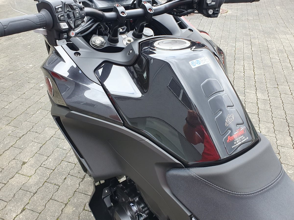 - Tank mit 20 Liter Fassungsvermögen, was eine Reichweite von 400 Kilometern ermöglicht