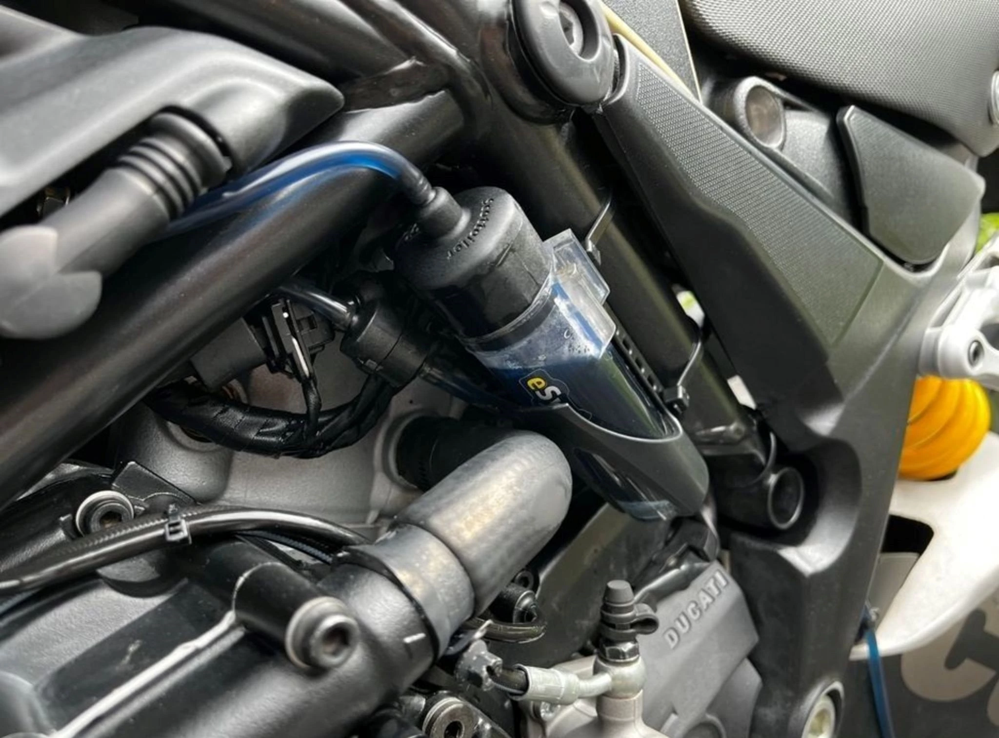 Die Maschine wurde von mir sinnvoll aufgerüstet. Verbaut ist eine komplette Termignoni-Rennsportauspuffanlage inklusive passendem Mapping. Klingt satt und kernig, nicht aufdringlich, und bringt spürbar mehr Druck, vor allem im mittleren Drehzahlbereich.