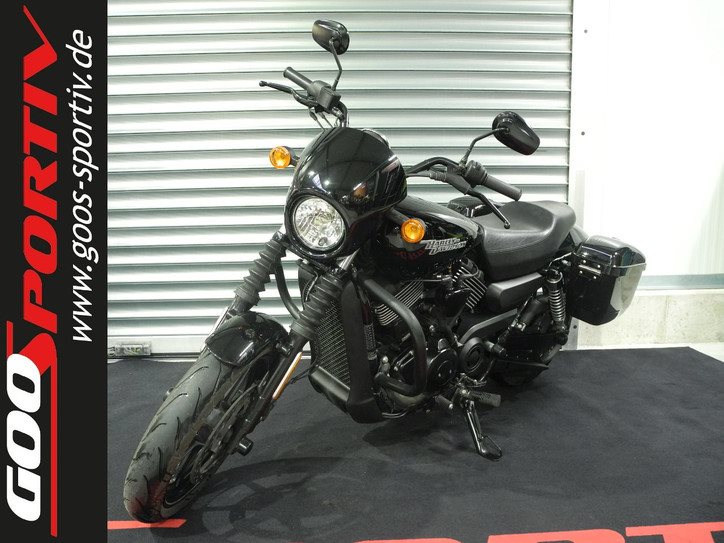 Gebrauchtfahrzeug Harley Davidson Street 750 in schwarz vom Händler mit 1 Jahr Händlergewährleistung * deutsches Modell, GUTER ZUSTAND aus 1. Hand, scheckheftgepflegt, inkl. Koffer und Komfortsitzbank (Original vorhanden)