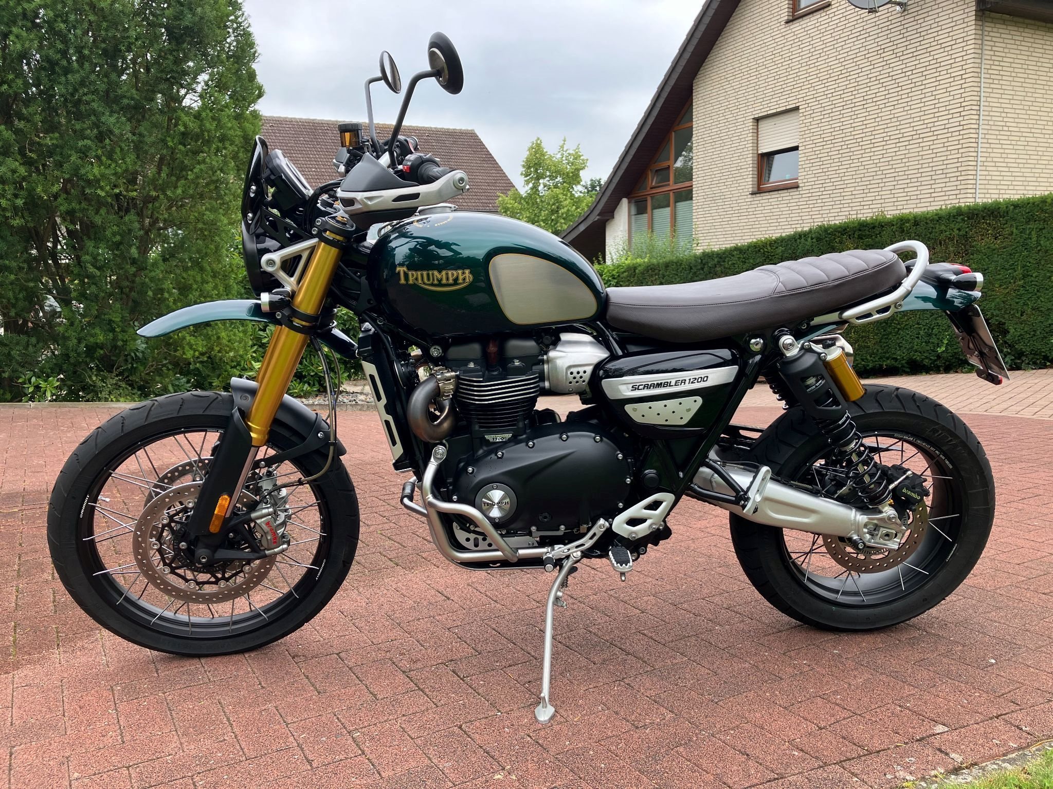 Ich verkaufe hier meine Scrambler 1200 in der limitierten Steve McQueen Edition (768 von 1000, weltweit) im absolutem Neuzustand. Es gibt weder Kratzer, Beulen, Dellen etc., und natürlich ist sie auch um- und unfallfrei! Folgendes Zubehör ist verbaut: kleines Windschild (orig. Triumph), kleinere LED-Blinker (orig. Triumph), kurzes Heck, Stromversorgung ins Cockpit fürs Navi, Handy etc.. Alle Originalteile werden mitgegeben! Beide Reifen wurden bei Kilometerstand 5100 erneuert sowie eine neue Batterie eingebaut. Die Kette ist vor ca. 500 km gereinigt worden. Bitte nur ernstgemeinte Anfragen!!! T.: 0151-70808215 .