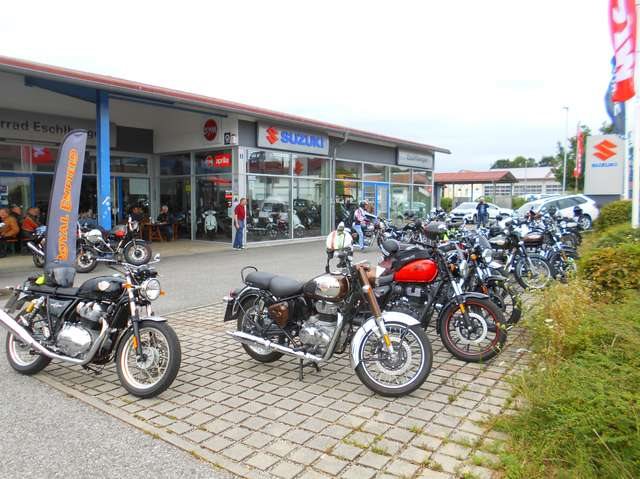 Die Classic 350 "Motorrad Pur"Der hübsche luftgekühlte Einzylinder mit Langhubtechnik und Power vom Keller, einzigartiger TÖFF TÖFF Motorradklang (das musst du hören){{{ }}} Sitzhöhe 80 mm{{{ }}} 13 Ltr. Tank{{{ }}} Verbrauch nur 2,8 Ltr. /100 Km{{{ }}} Beifahrersitz inklusive Wir sind seit 25 Jahren Motorradhändler für SUZUKI und seit 23 Jahren Royal Enfield Hdl.,Aprilia, CF MOTO, BRIXTON, MOTRON, MALAGUTI und SYM Hdl. einer der Langjährigsten RE Hdl. mit Erfahrung in Deutschland.Versand Deutschlandweit mit unseren Partner Speditionen möglich.Gerne nehmen wir Ihre Gebrauchte in Zahlung, und bieten Ihnen über unsere Suzuki Finance günstige Finanzierungen an.Bitte keine Anfragen wie: was ist Letzte Preis oder Preis Export !!Nur ernstgemeinte Anfragen !!!Beratung und Probefahrt unter 0049-1758363098 wir freuen uns auf deinen Anruf