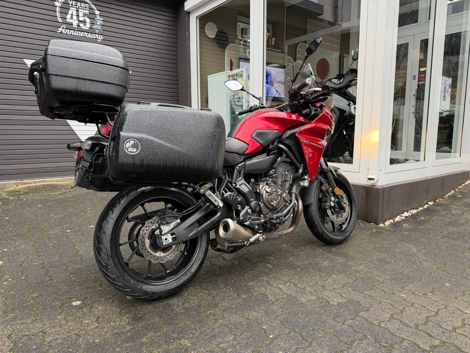 Hepco & Becker Seitenkoffer + TopCase, Hauptständer.