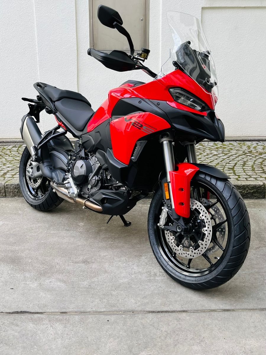 Die neue Ducati Multistrada V2 verkörpert die Essenz des Fahrvergnügens und wurde rund um den neuen V2-Motor komplett überarbeitet.Die Multistrada V2 des Modelljahrs 2025 ist mit einem neuen 5-Zoll-TFT-Farbdisplay mit völlig neu gestalteter Benutzeroberfläche ausgestattet. Ebenfalls neu sind die Bedieneinheiten am Lenker, mit denen sich die 5 Riding Modes (Sport, Touring, Urban, Enduro und Wet) steuern lassen. Mit der vereinfachten Bedienung kann der Fahrer schnell die verschiedenen Parameter anpassen oder einen anderen Power Mode auswählen, um die Performance und das Ansprechverhalten des Motors für die jeweilige Fahrsituation zu optimieren. Unabhängig von den Riding Modes ermöglichen die Suspension Modes eine individuelle Anpassung der Federung, ohne die anderen Einstellungen zu verändern.