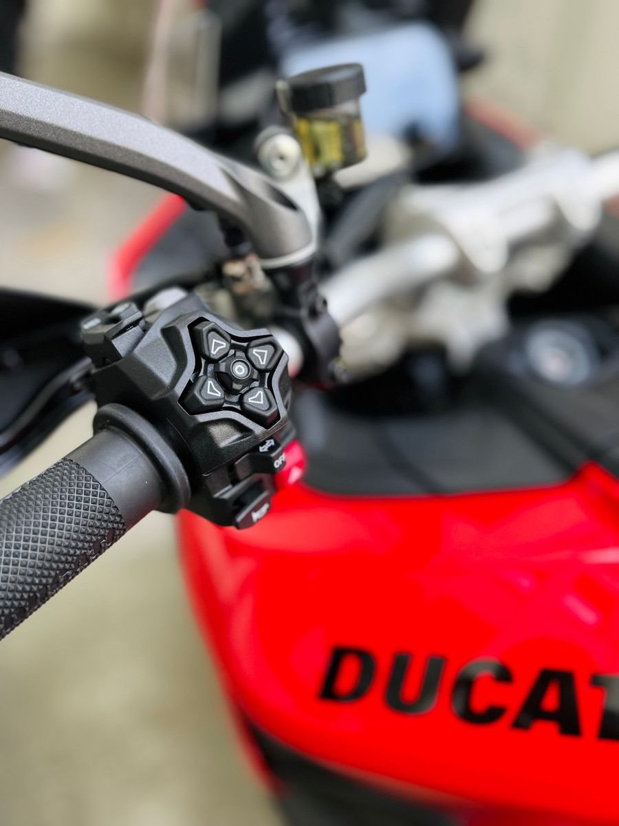 Ducati Quick Shift (DQS) Up / Down 2.0, Voll-LED-Scheinwerfer mit Daytime Running Light (DRL)?, automatische Blinkerrückstellung, Ducati Multimedia System (DMS), Coming-Home-Funktion, Tempomat, USB-Steckdose