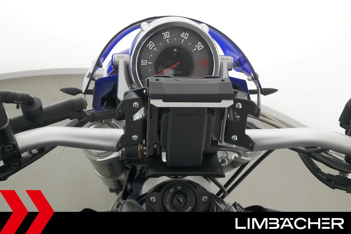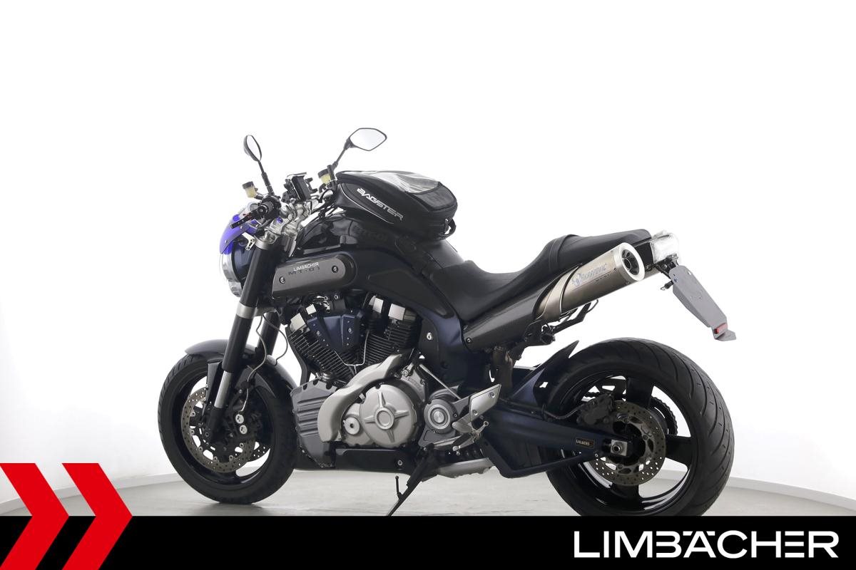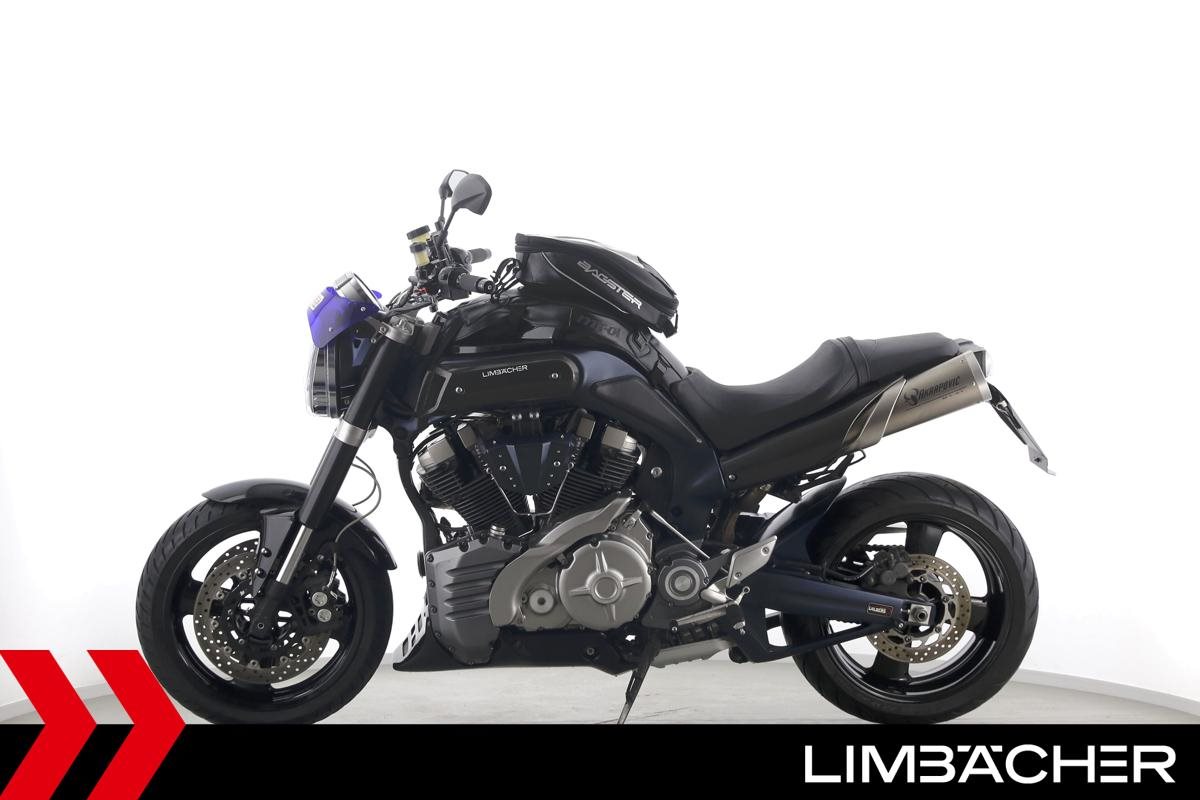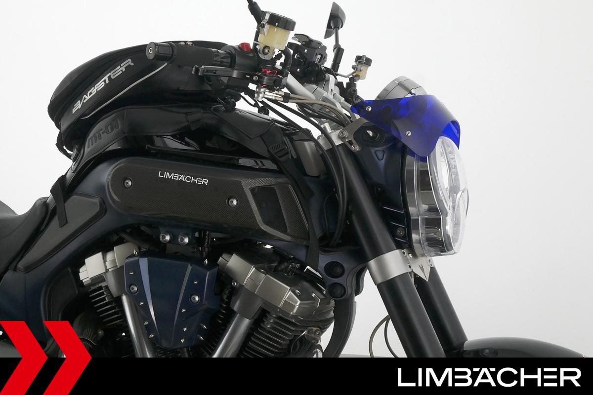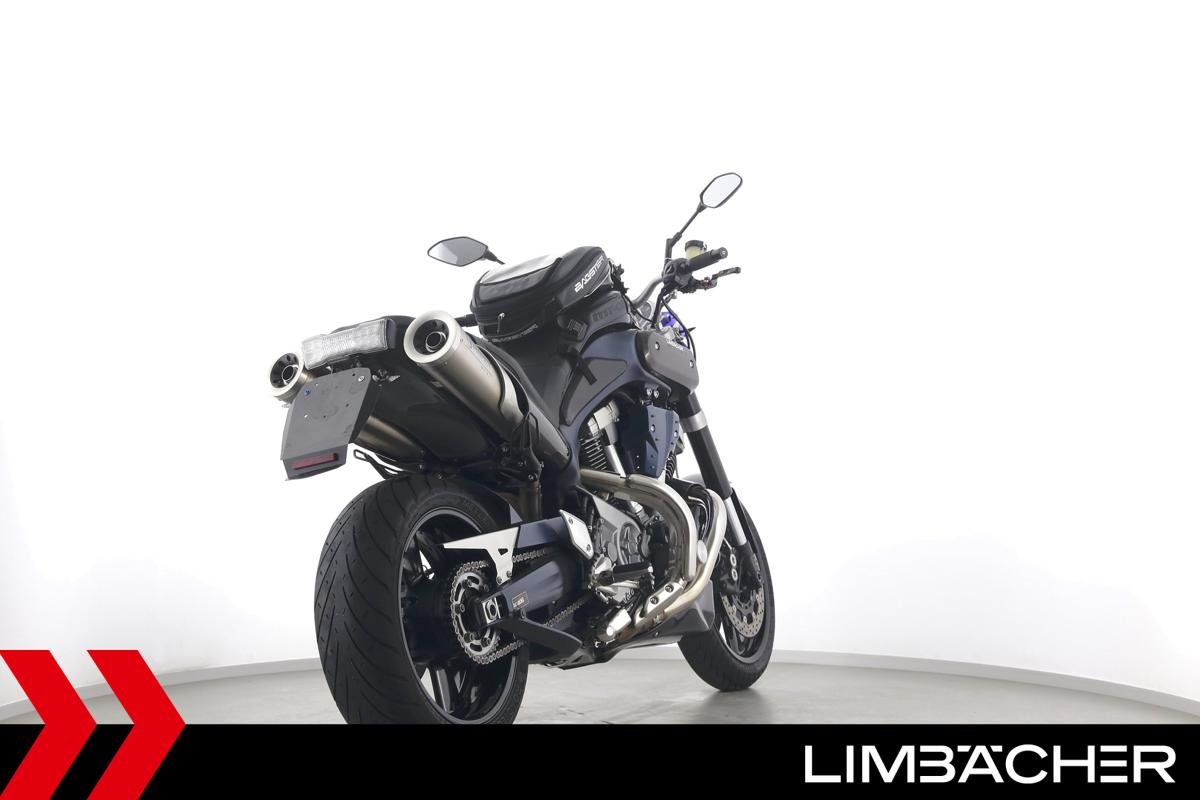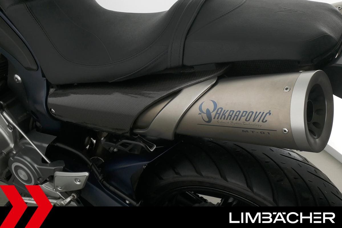 Eine Yamaha MT-01 in gepflegtem Zustand u.a. mit Akrapovic-Endschalldämpfer sowie Puig-Brems- und -Kupplunghebel.