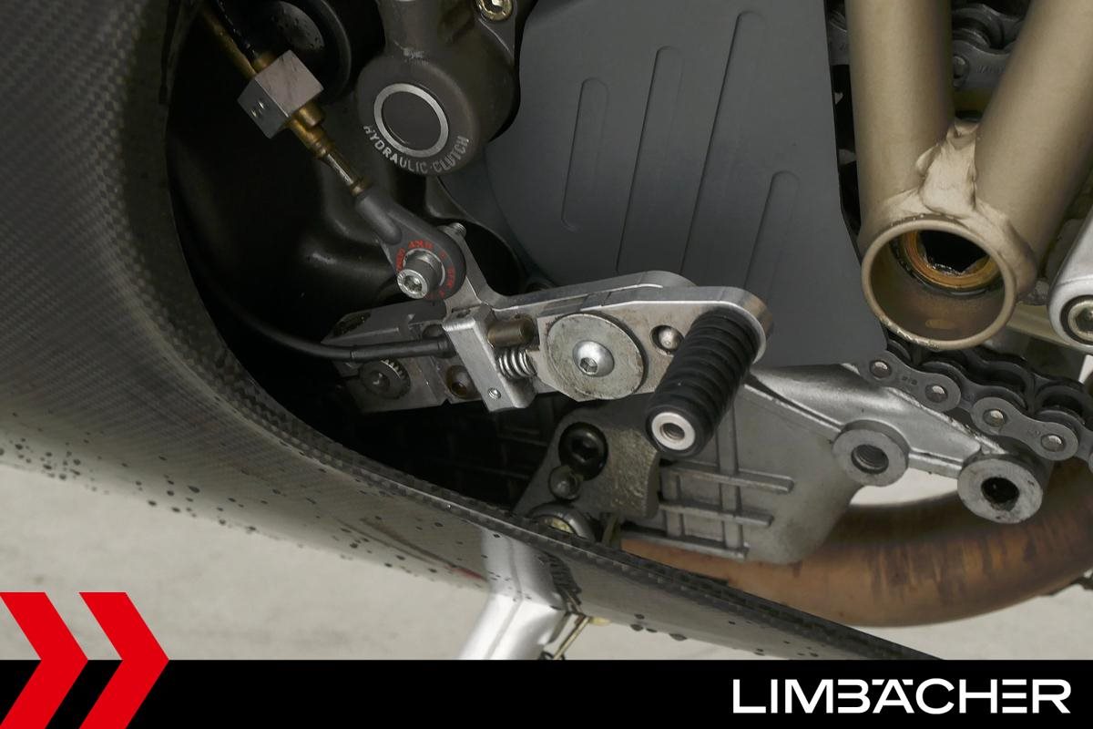Eine Ducati 916 S in gepflegtem Zustand u.a. mit Öhlins-Federbein sowie Tellert-Halbautomatik-Schaltung.