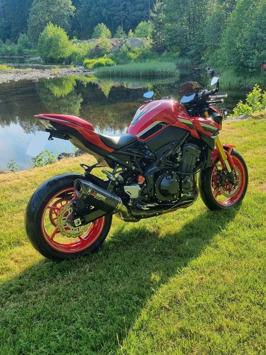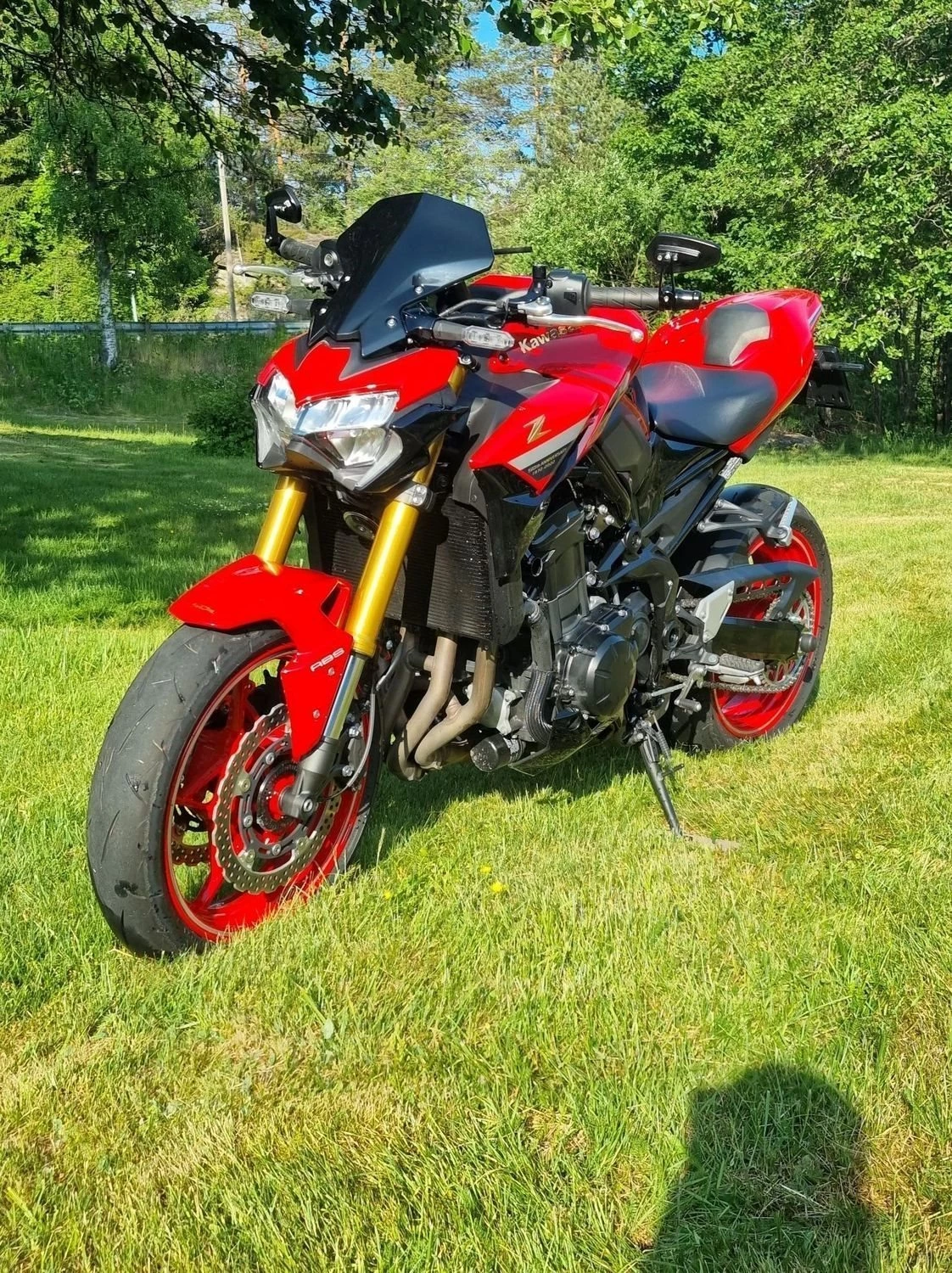 Gepflegte Kawasaki Z900 abzugeben. Das Motorrad läuft einwandfrei und macht richtig Spaß zu fahren. Sehr stabiles und leichtes Handling, nicht umsonst wird die Z900 dafür überall gelobt. Sie verfügt über drei Fahrmodi, die sich schnell und unkompliziert an den eigenen Fahrstil anpassen lassen. Einige sinnvolle Umbauten wurden bereits gemacht: Leistungssteigerung, kurzes Kennzeichenheck, neue Spiegel, Einzelsitzbank sowie eine hohe Windschutzscheibe. Das Heck ist außerdem um ca. 3 cm tiefergelegt. Alle Originalteile sind natürlich vorhanden und können bei Bedarf mitgegeben werden. Insgesamt ein ehrliches, gepflegtes Motorrad, das sofort fahrbereit ist.