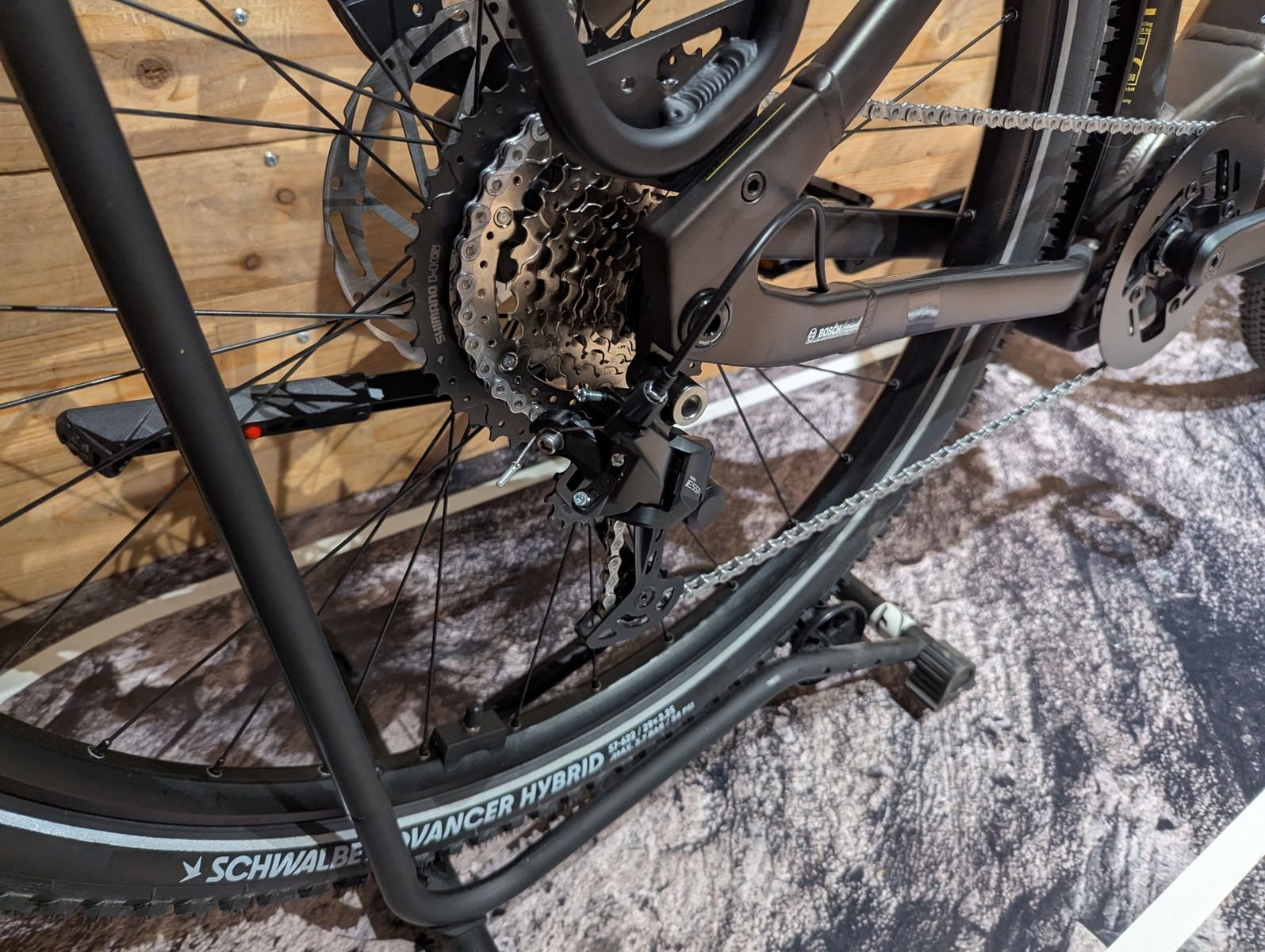 Die Shimano 8-Gang-Schaltung in Kombination mit der SR Suntour Federgabel (75?mm) sorgt für präzises Schalten und angenehmen Fahrkomfort auf wechselndem Untergrund.