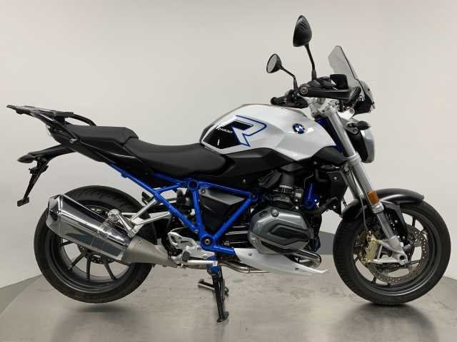 Gepflegte BMW R1200 R mit hoher Sitzbank, Heizgriffen, BMW-Windschild, Hauptständer, Gepäckbrücke, Handschutz, Zylinderschutz, Kardanschutz und Seitenständerverbreiterung.