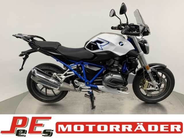 Gepflegte BMW R1200 R mit hoher Sitzbank, Heizgriffen, BMW-Windschild, Hauptständer, Gepäckbrücke, Handschutz, Zylinderschutz, Kardanschutz und Seitenständerverbreiterung.