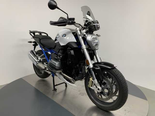 Gepflegte BMW R1200 R mit hoher Sitzbank, Heizgriffen, BMW-Windschild, Hauptständer, Gepäckbrücke, Handschutz, Zylinderschutz, Kardanschutz und Seitenständerverbreiterung.