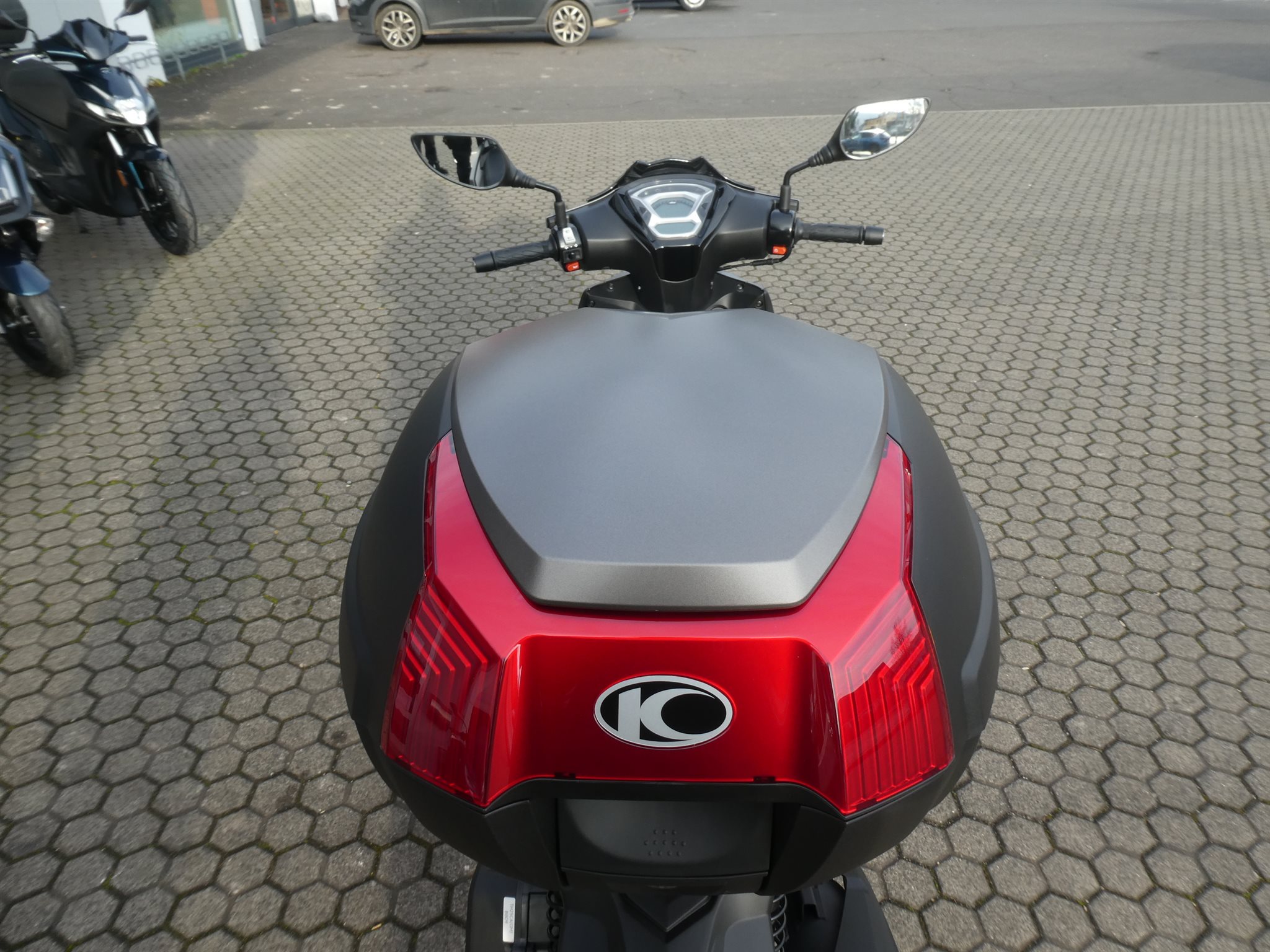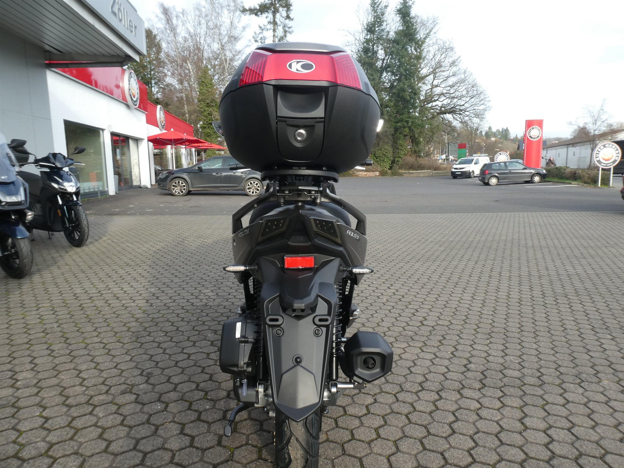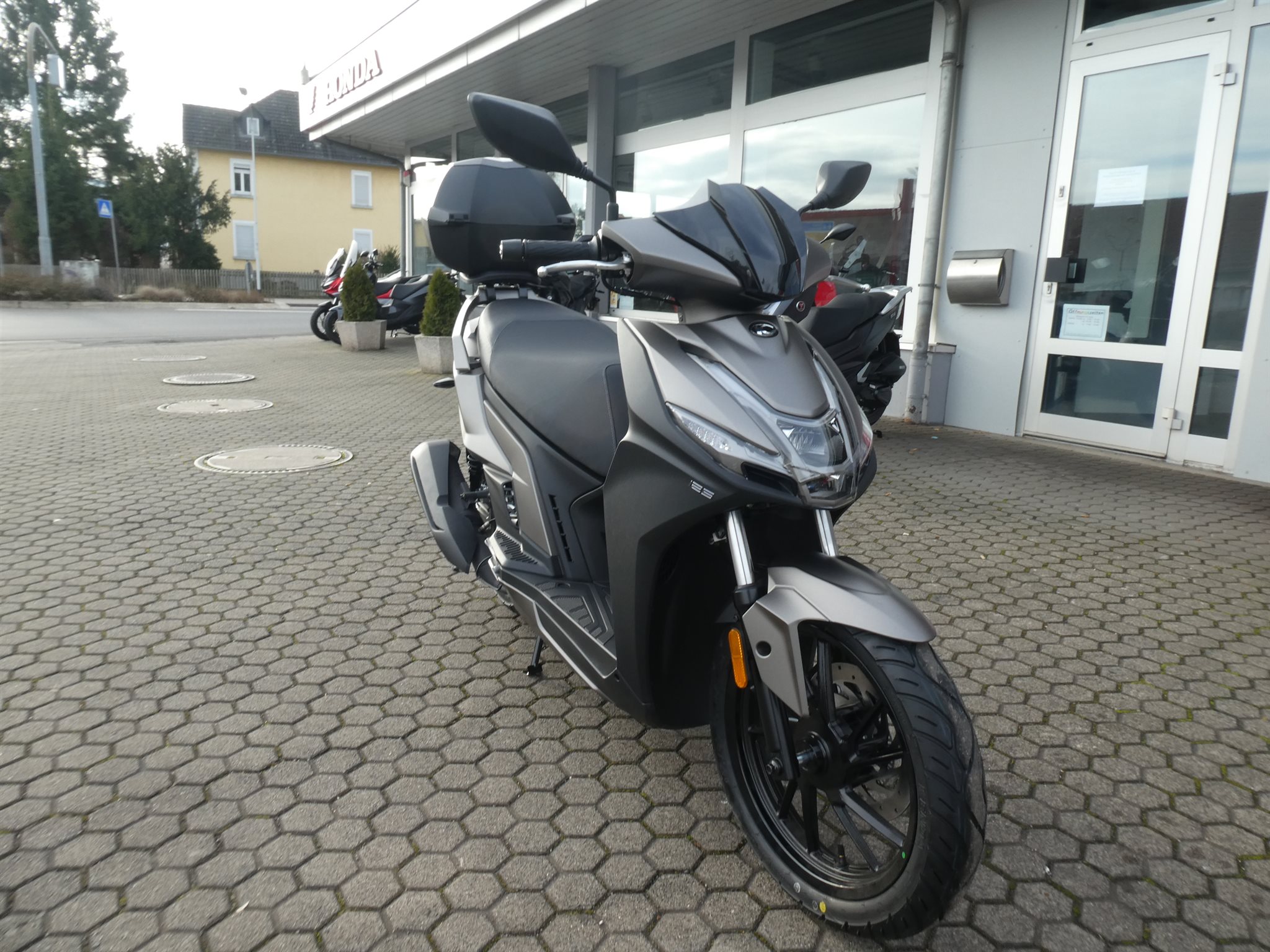 Zur Serienausstattung gehört ein großzügiges Topcase, das zusammen mit dem Stauraum unter der Sitzbank ausreichend Platz für Helm, Einkauf oder Sporttasche bietet. Die Voll-LED-Beleuchtung sorgt nicht nur für gute Sichtbarkeit, sondern unterstreicht auch den modernen Auftritt des Rollers.