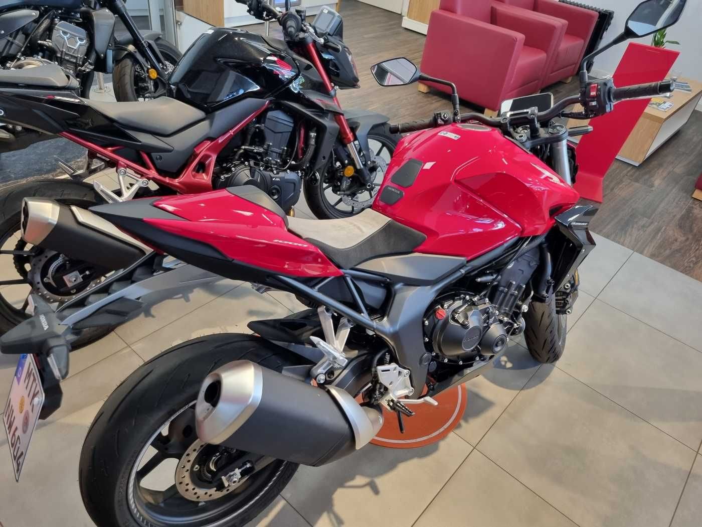 Hier ist alles echt. Das ist das Motorrad in seiner rohesten Form, straff definiert. Die kompromisslose Streetfighter-Attitüde der CB1000 Hornet wird durch den markanten, superkompakten LED-Doppelscheinwerfer unterstrichen, der passgenau in der diskreten Frontverkleidung sitzt. Der dezent geschwärzte Rahmen bringt ein starkes Element des geschmeidigen Designs mit sich und unterstreicht die Linienführung ebenso wie der hintere Hilfsrahmen im Spalierstil. Um ihr einen aggressiven Look zu verleihen, sind der Motor, die Räder und die Schwinge ebenfalls in Schwarz gehalten. Und der für die Hornet charakteristische, breitschultrige Kraftstofftank, der sich radikal nach hinten verjüngt, steht für pure Leistung.