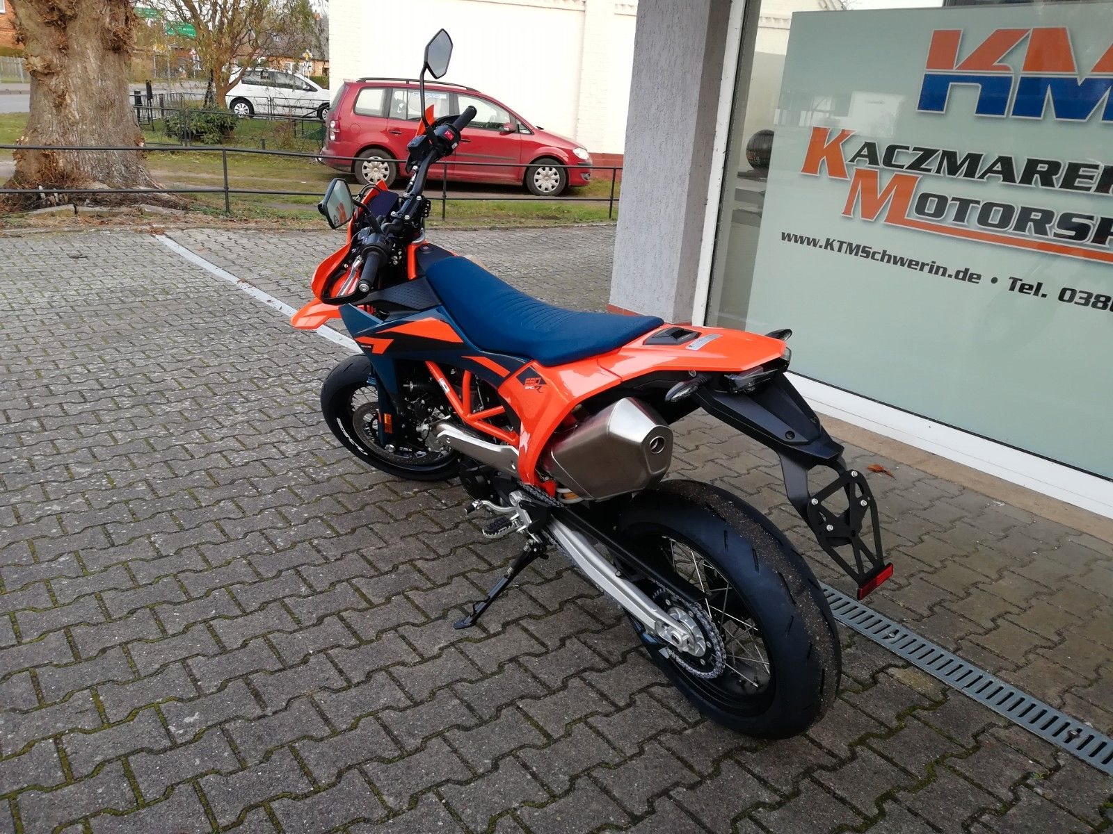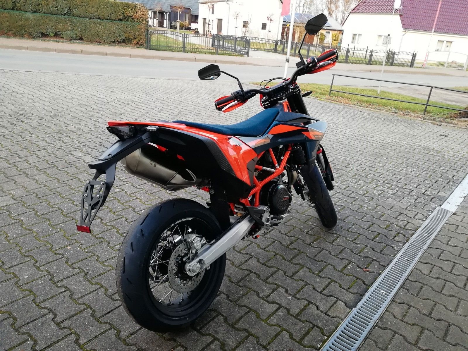 Die KTM 690 SMC R setzt sich gegen die Konkurrenz durch und erweist sich als unangefochtener König ihrer Klasse. Die KTM 690 SMC R bietet dem Fahrer ein agiles Handling, klassenbeste Leistung und eine auf den Fahrer ausgerichtete Ergonomie und verkörpert den Begriff READY TO RACE mit 110% Hingabe zu ihrem Handwerk. Ob beim Rutschen in die Kurven, bei Power-Wheelies über Kuppen oder bei harten Sprüngen durch enge Bergpässe - der König der Supermoto für die Street greift an.