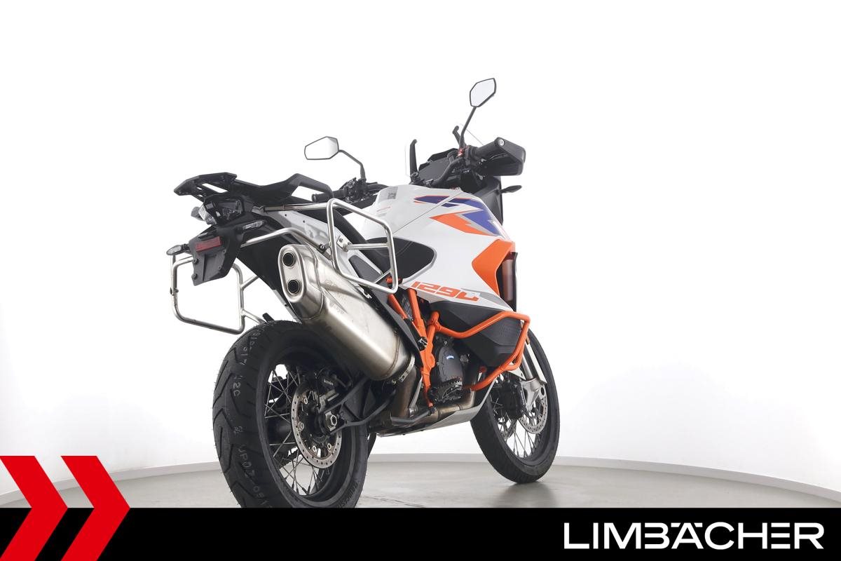 Eine KTM 1290 Super Adventure R aus zweiter Hand in sehr gepflegtem Zustand u.a. mit Sturzbügel sowie Touratech-Gepäckträger.