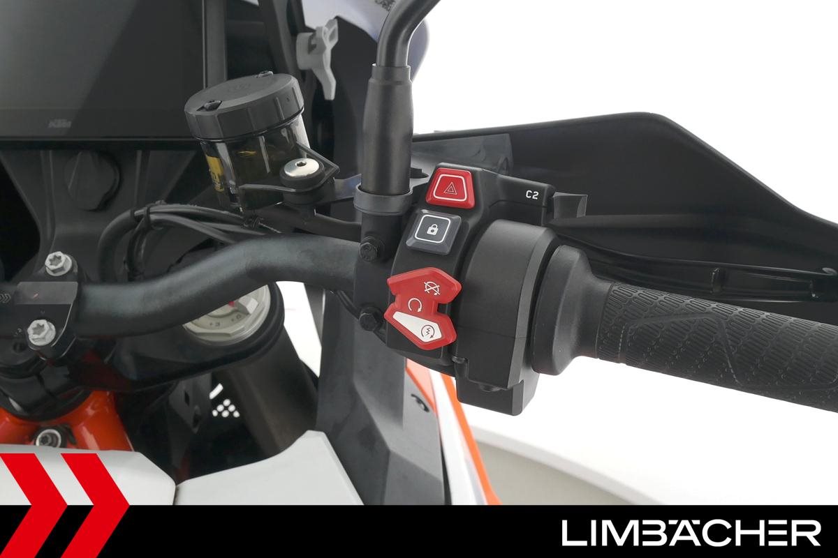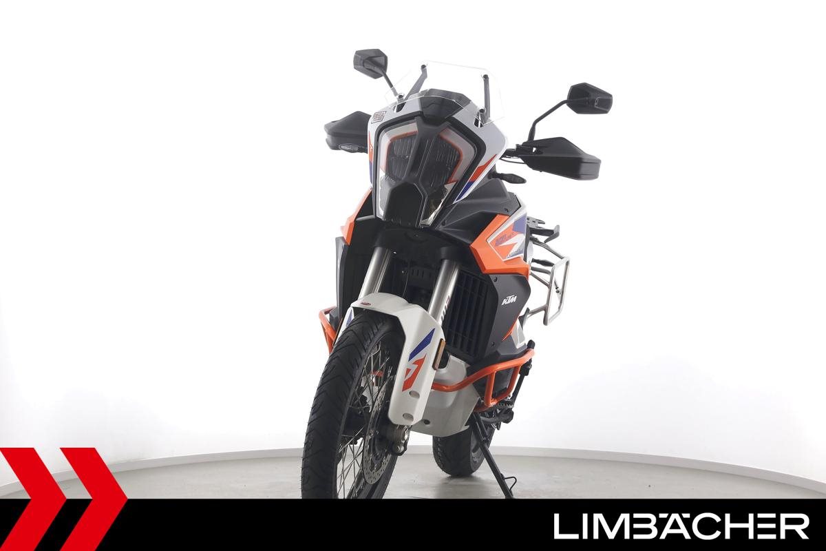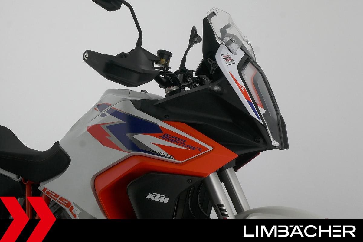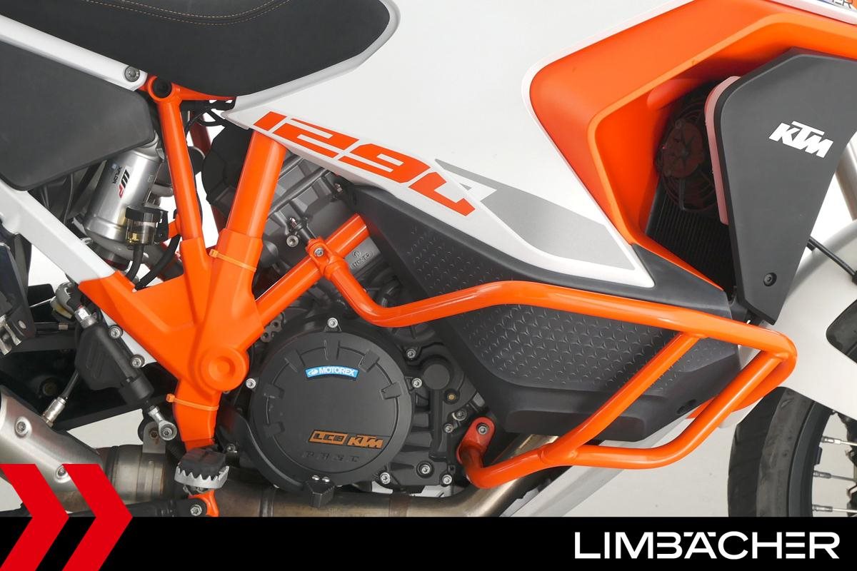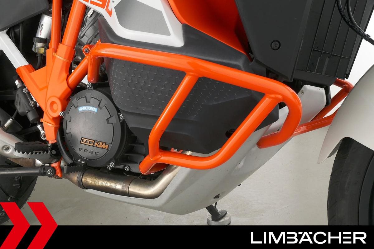 Eine KTM 1290 Super Adventure R aus zweiter Hand in sehr gepflegtem Zustand u.a. mit Sturzbügel sowie Touratech-Gepäckträger.