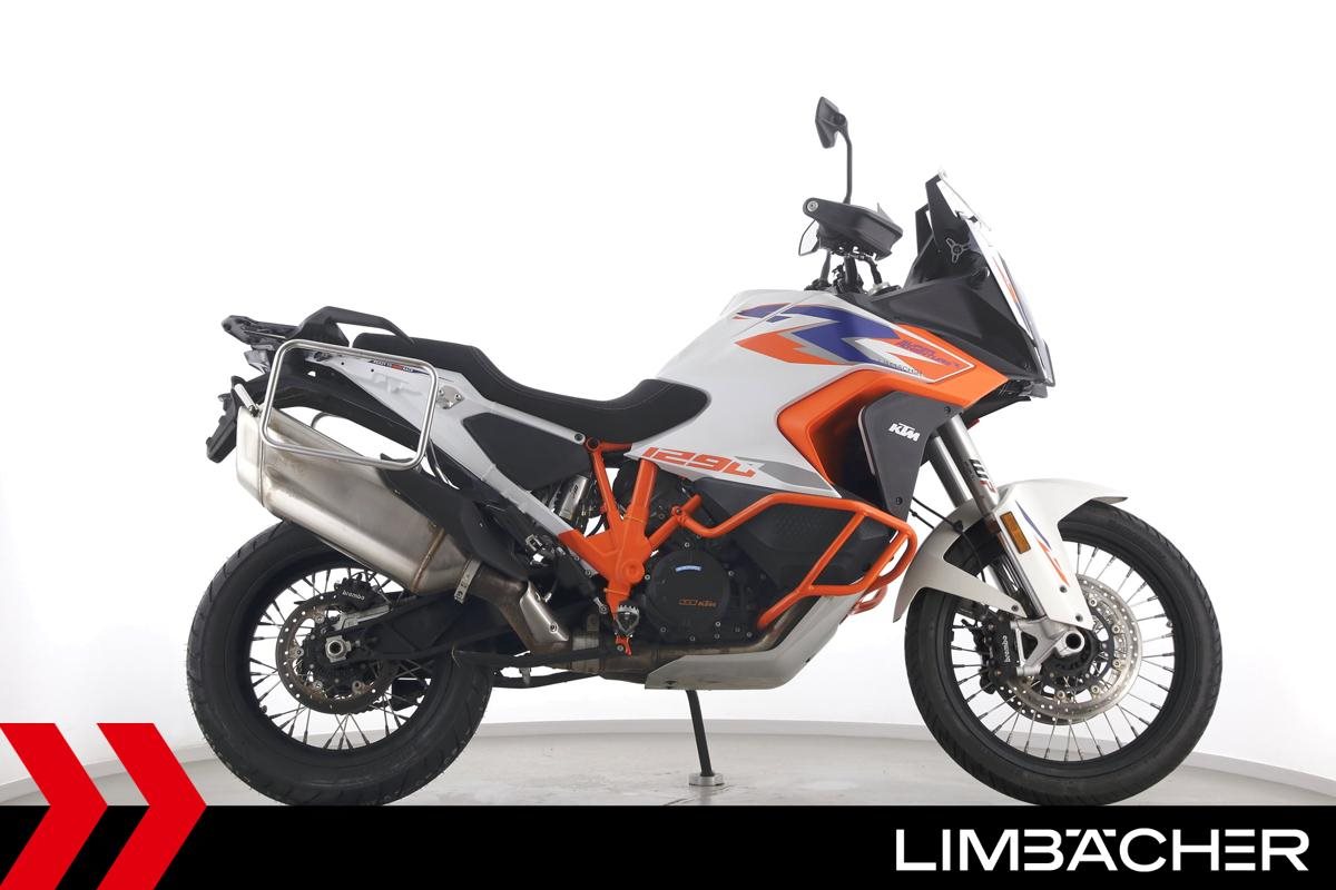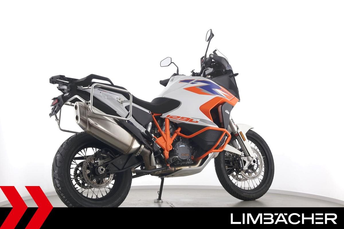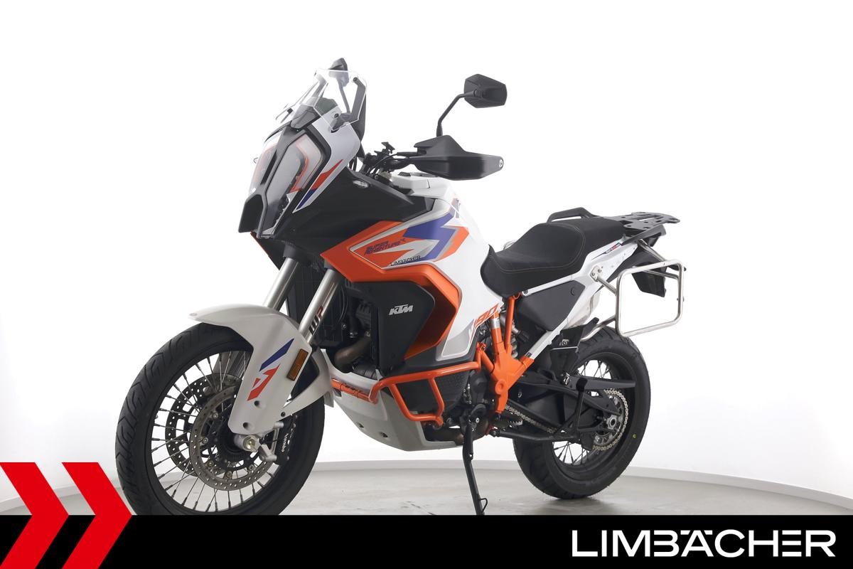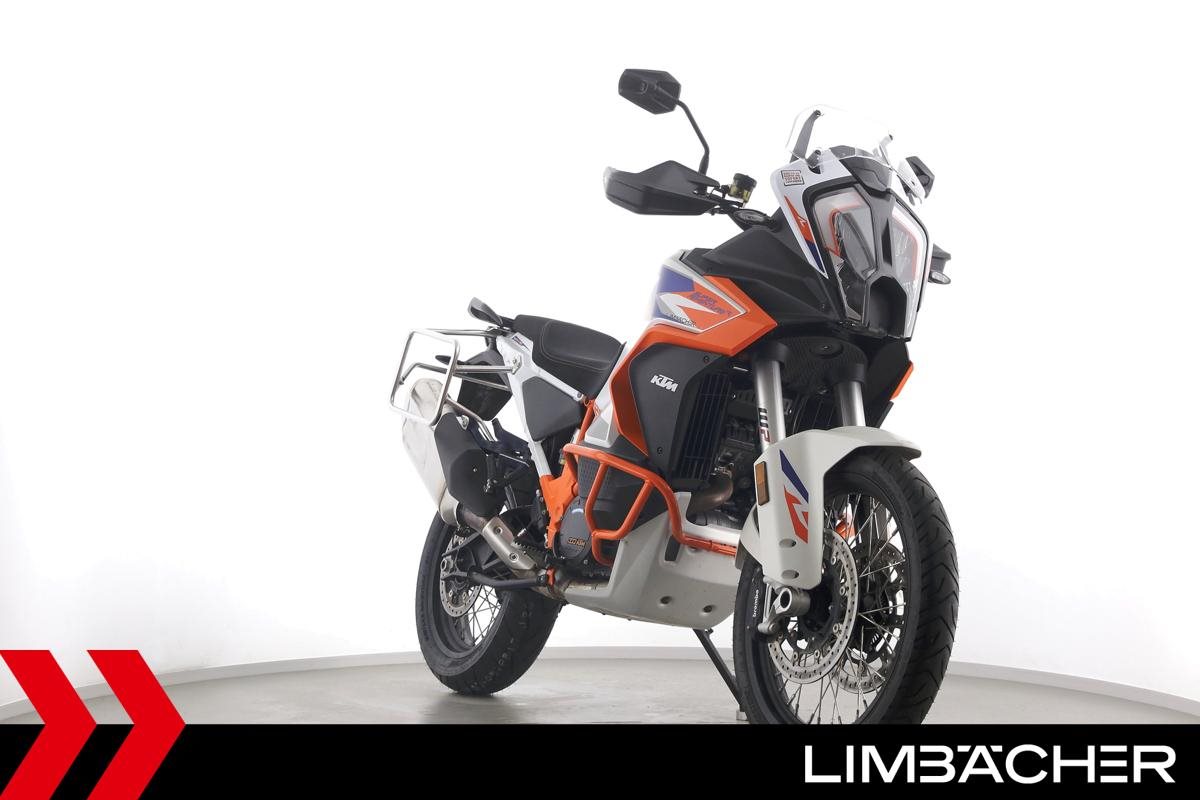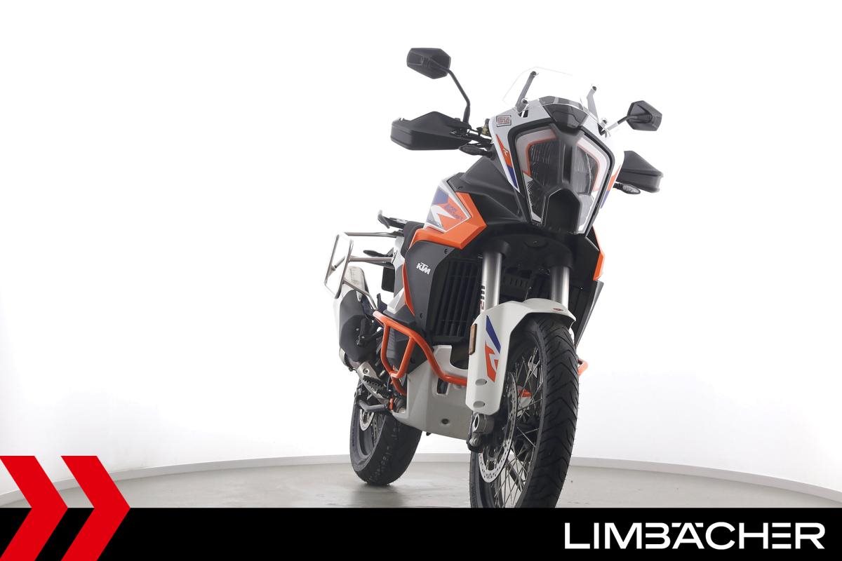 Eine KTM 1290 Super Adventure R aus zweiter Hand in sehr gepflegtem Zustand u.a. mit Sturzbügel sowie Touratech-Gepäckträger.