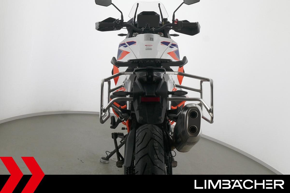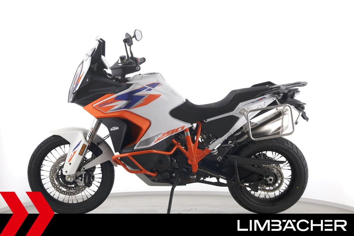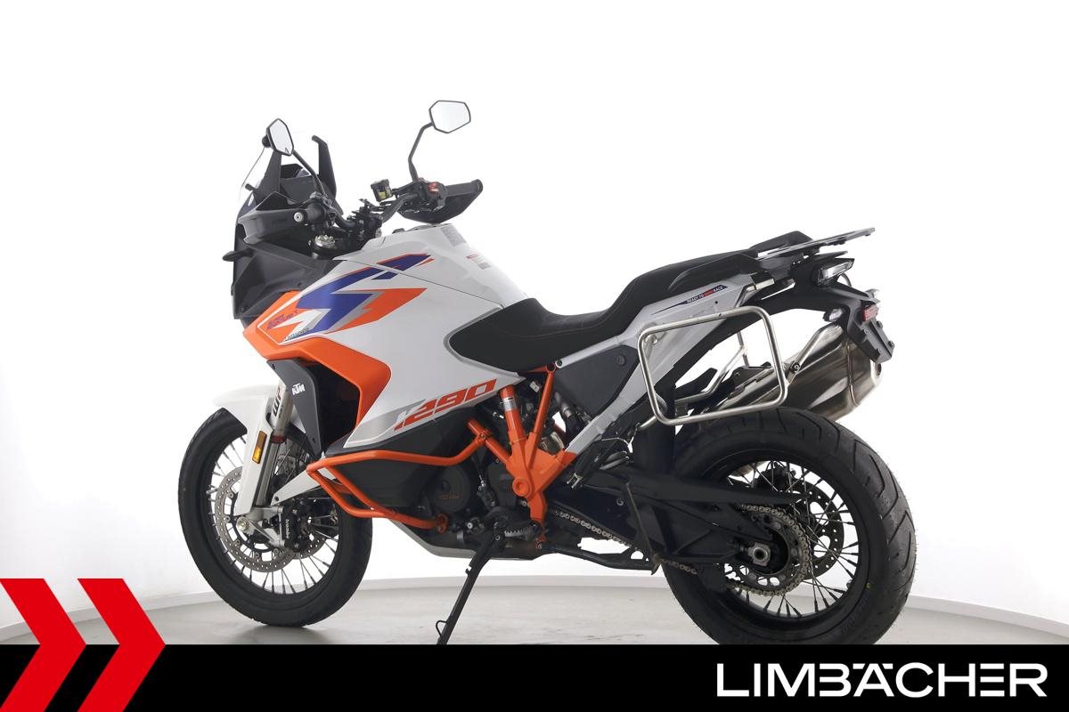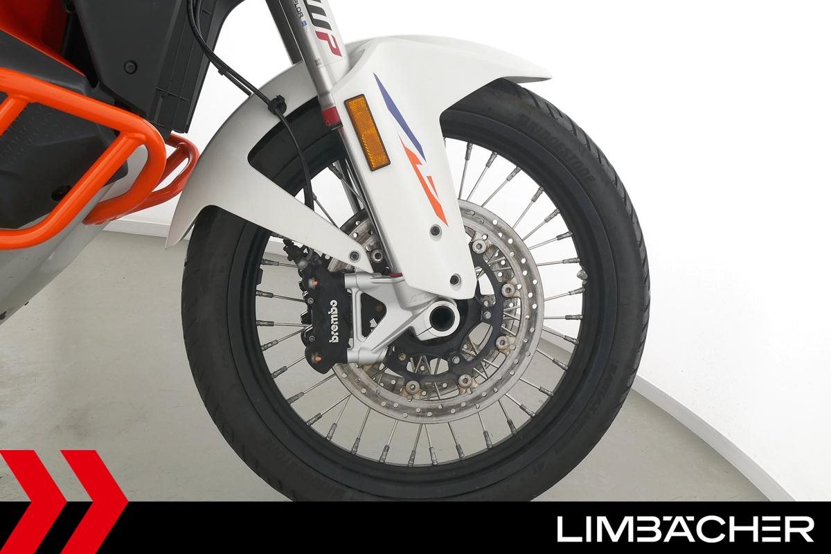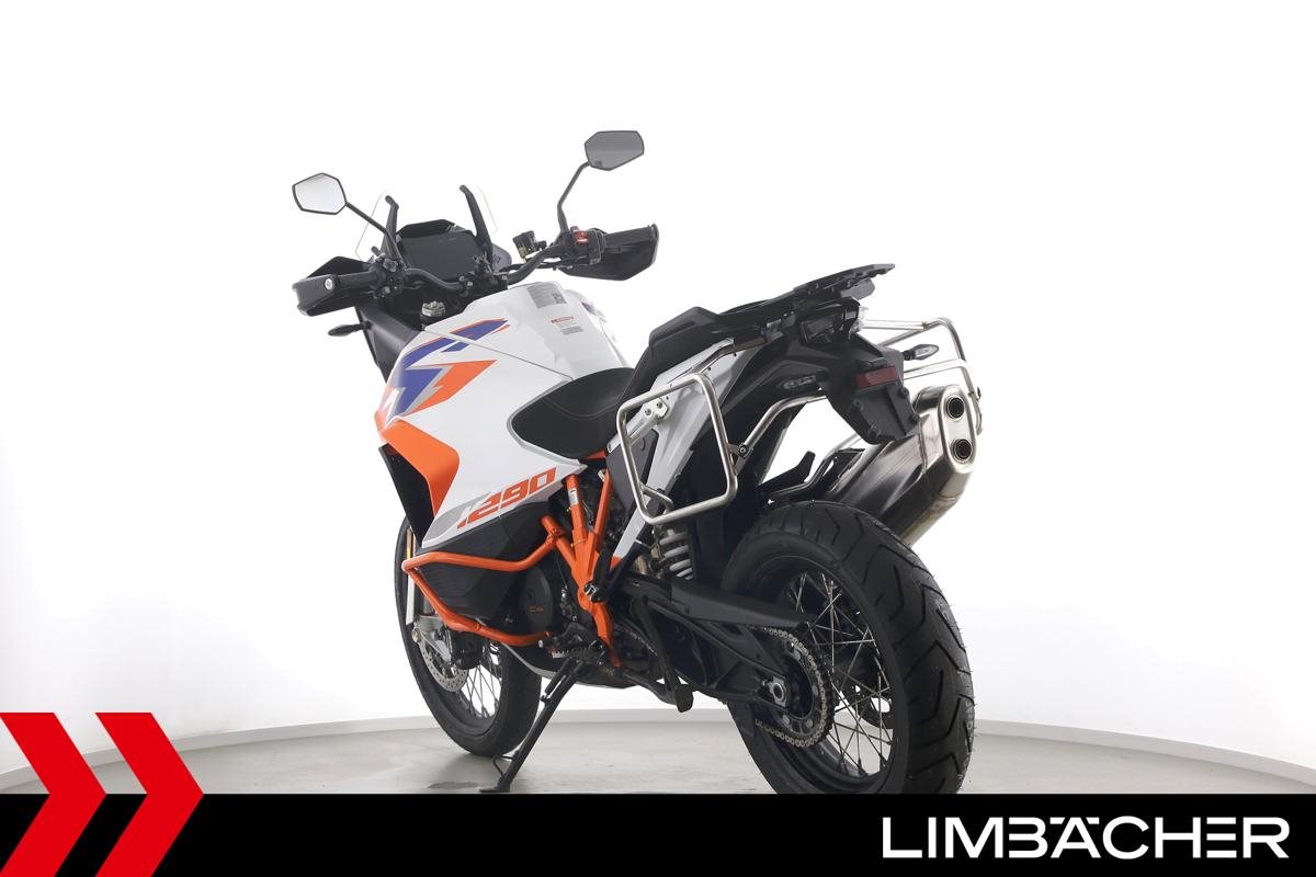 Eine KTM 1290 Super Adventure R aus zweiter Hand in sehr gepflegtem Zustand u.a. mit Sturzbügel sowie Touratech-Gepäckträger.