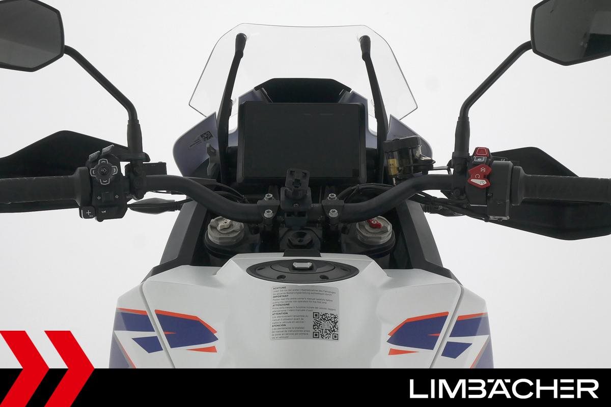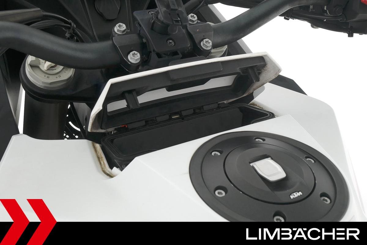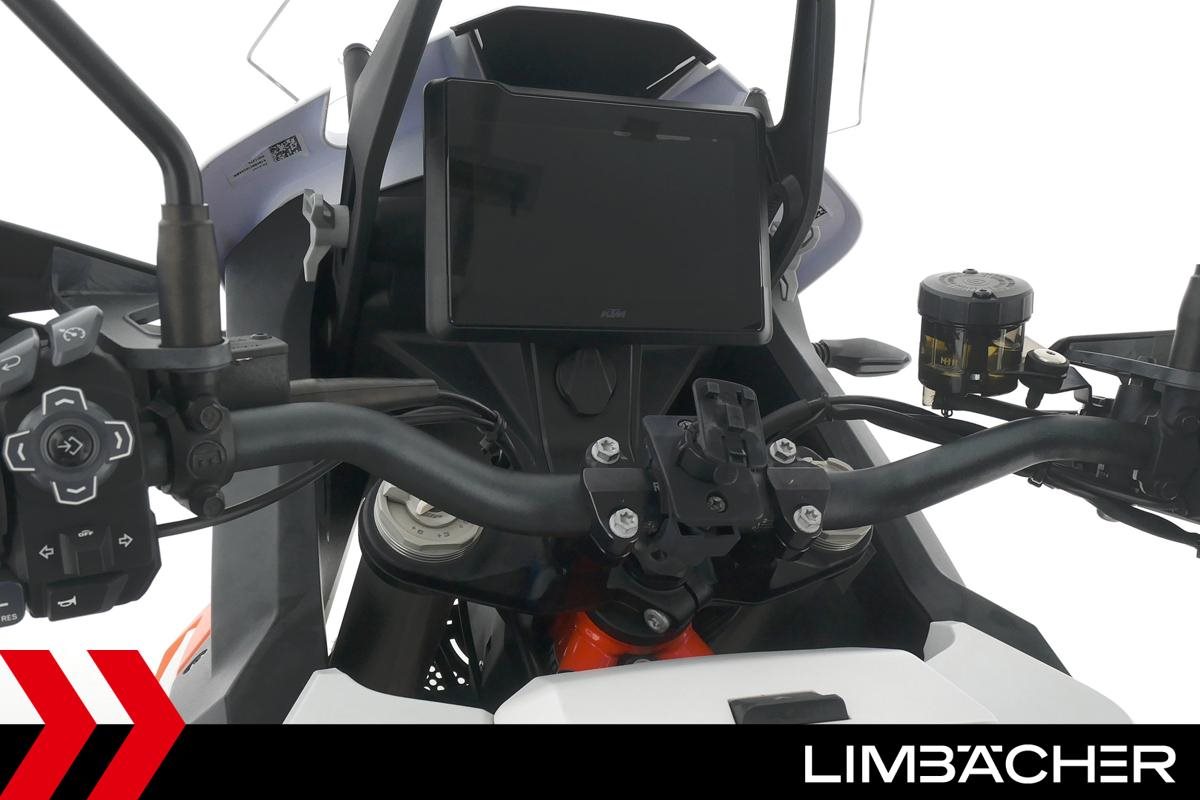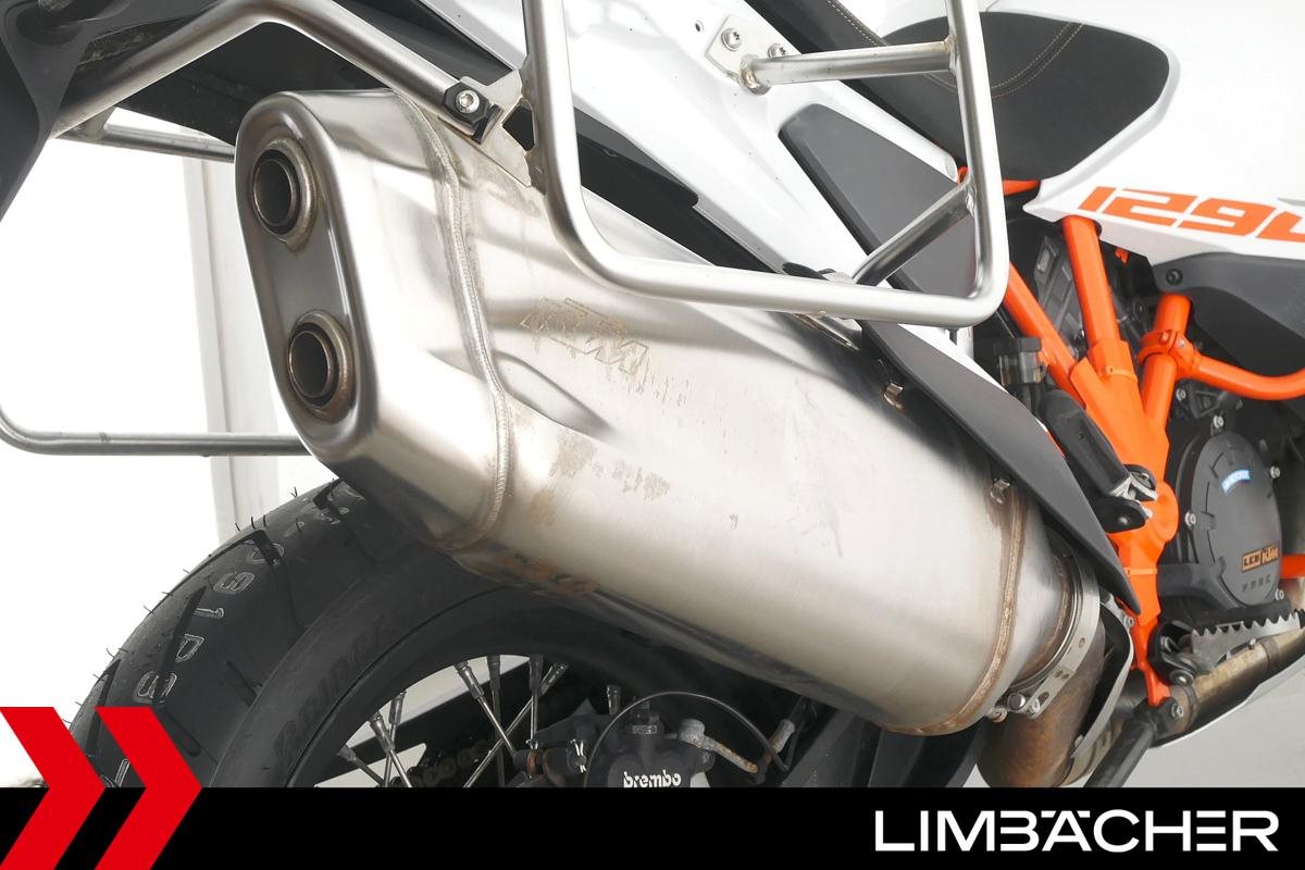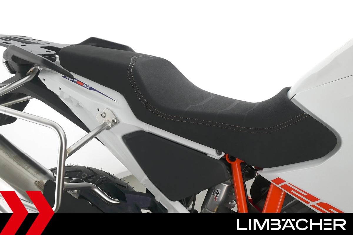 Eine KTM 1290 Super Adventure R aus zweiter Hand in sehr gepflegtem Zustand u.a. mit Sturzbügel sowie Touratech-Gepäckträger.