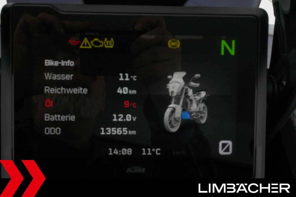 Eine KTM 1290 Super Adventure R aus zweiter Hand in sehr gepflegtem Zustand u.a. mit Sturzbügel sowie Touratech-Gepäckträger.