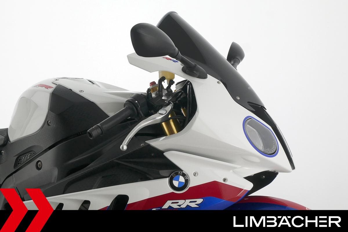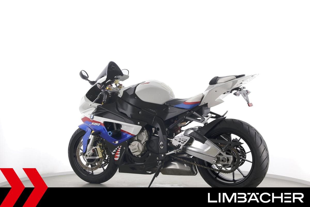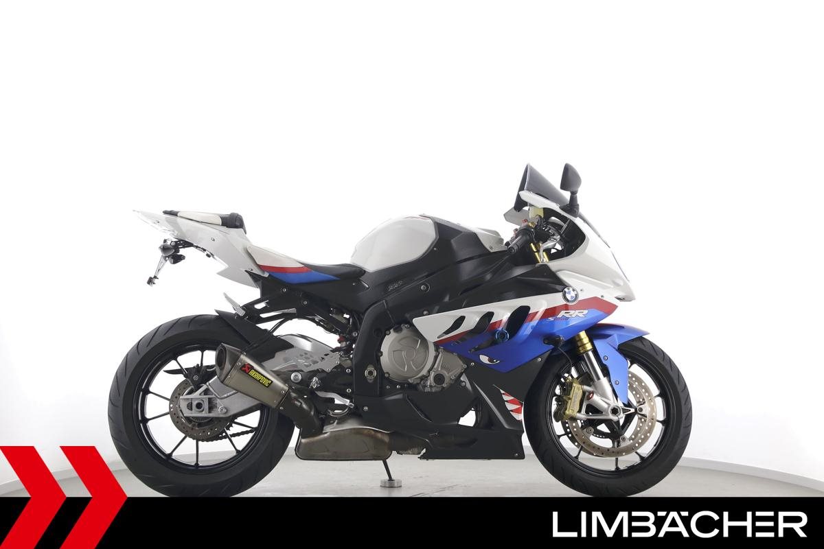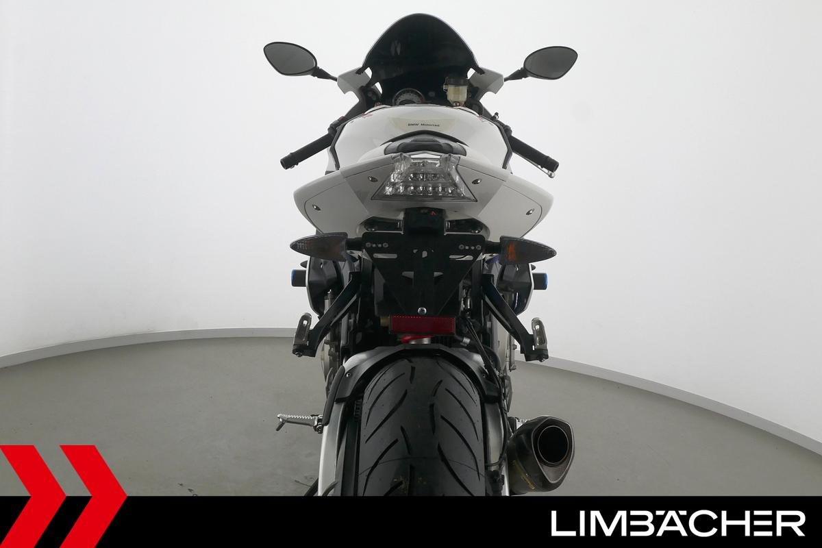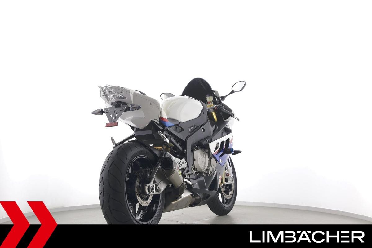 Eine scheckheftgepflegte BMW S 1000 RR in gepflegtem Zustand u.a. mit Akrapovic-Endschalldämpfer sowie kurzem Kennzeichenhalter.