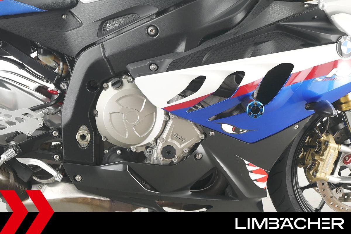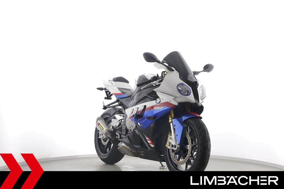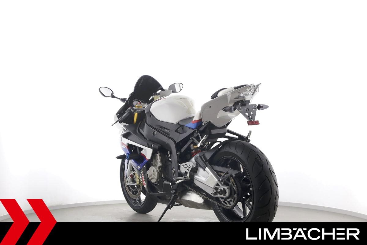 Eine scheckheftgepflegte BMW S 1000 RR in gepflegtem Zustand u.a. mit Akrapovic-Endschalldämpfer sowie kurzem Kennzeichenhalter.