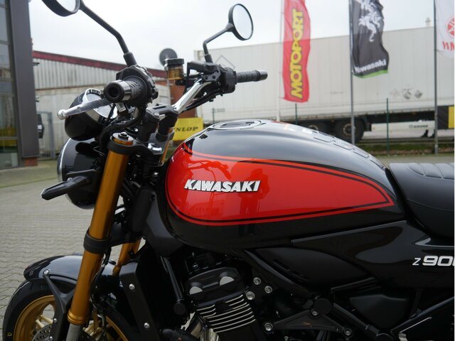 Inspiriert von der legendären Z1, interpretiert die Z900RS klassische Details neu- darunter den komfortablen Vintage-Sitz, analoge Rundinstrumente und den sportlich abgestimmten, soundoptimierten Megaphon-Endschalldämpfer. Gleichzeitig zeigt sie moderne Handwerkskunst in jedem Detail und eröffnet so eine neue Ära des Fahrgefühls. Von elektronischem Tempomat und Smartphone-Konnektivität bis hin zum IMU-gestützten Fahrerassistenzpaket mit Kawasaki Cornering Management Function (KCMF) und Kawasaki Quick Shifter (KQS)- die Z900RS kombiniert modernste Technologie mit einem sanft ansprechenden Motor bei niedrigen Drehzahlen und packender Leistung im oberen Drehzahlbereich. Innovationen, die Komfort und pures Fahrvergnügen auf ein neues Niveau heben.