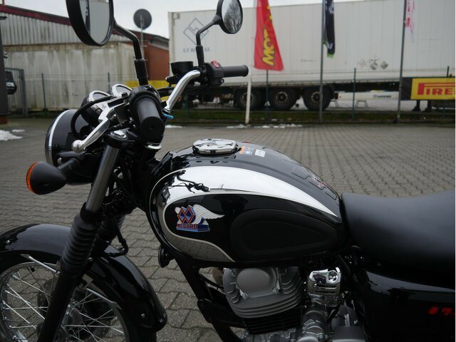 2024 jährt sich die Gründung von Meguro, einer der ältesten Motorradmarken Japans, zum hundertsten Mal. Zu diesem Anlass stellt Kawasaki für die 250-cm-Klasse die Meguro S1 vor - ein luftgekühltes Retro-Klassikermodell, das für Tradition und Vertrauen steht. Das ikonische Design, das von der Kawasaki 250 Meguro SG aus dem Jahr 1964 inspiriert wurde, wird von einem angenehmen Fahrgefühl begleitet. Gleichzeitig machen sie das leichte Chassis und die niedrige Sitzhöhe zu einem hervorragenden Einsteigermodell.
