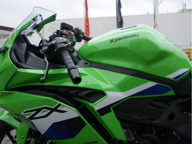 Mit der Ninja ZX-4RR wurde eine spektakuläre 400-cm-Revolution eingeläutet. Ihr Reihenmotor mit vier Zylindern erreicht nie dagewesene 57 kW (77 PS). Das leichte und ausgewogene Handling, verbunden mit perfekt abgestimmter Motorleistung, macht die Ninja ZX-4RR zu einem Leistungssportler.