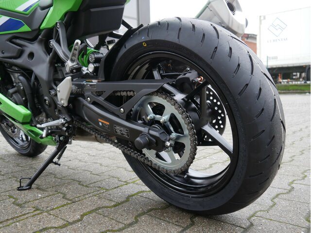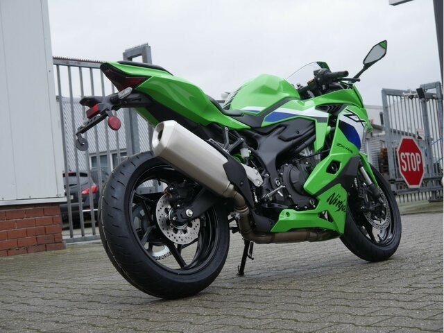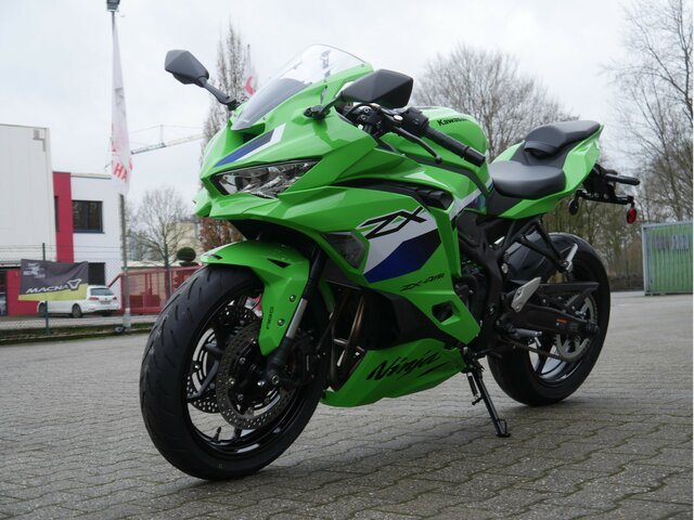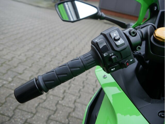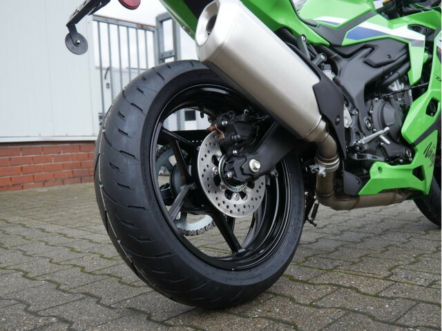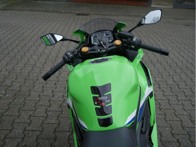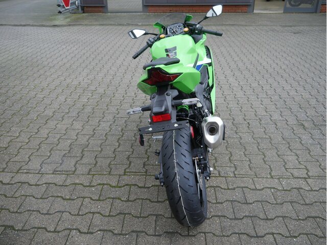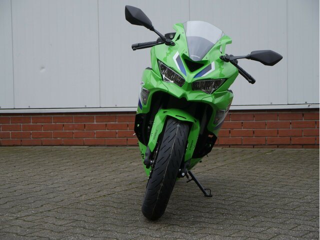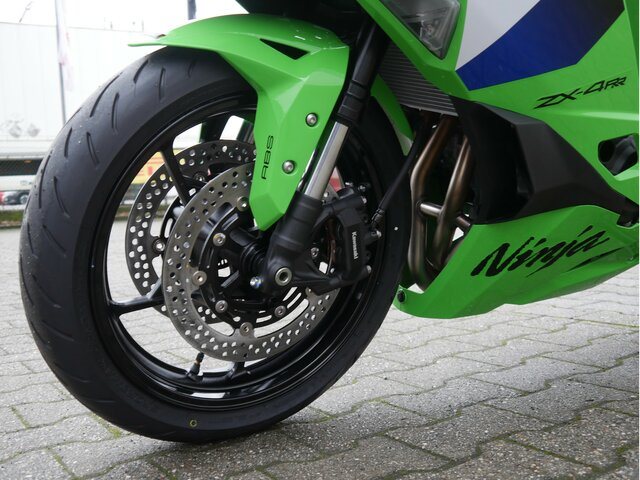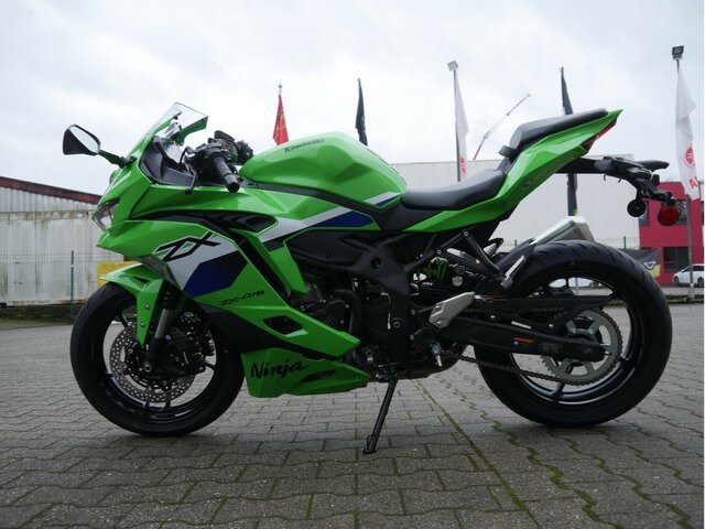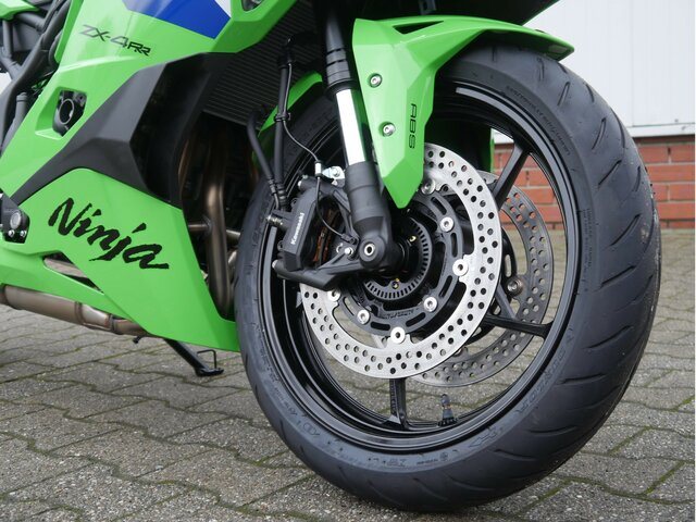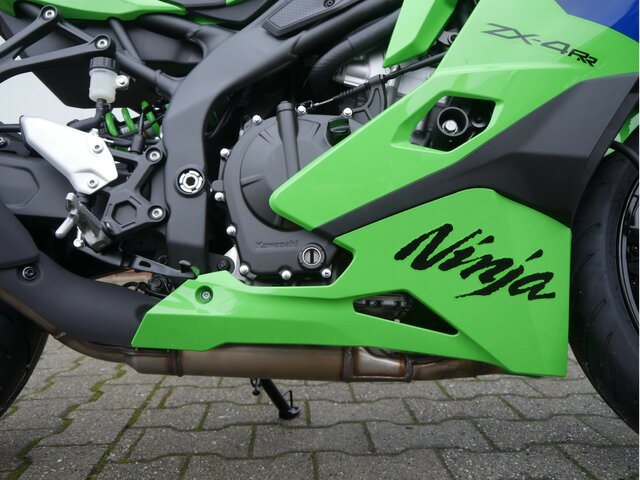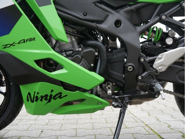 Mit der Ninja ZX-4RR wurde eine spektakuläre 400-cm-Revolution eingeläutet. Ihr Reihenmotor mit vier Zylindern erreicht nie dagewesene 57 kW (77 PS). Das leichte und ausgewogene Handling, verbunden mit perfekt abgestimmter Motorleistung, macht die Ninja ZX-4RR zu einem Leistungssportler.