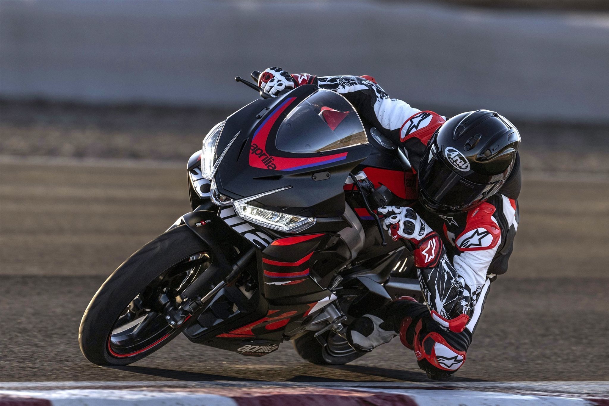 Die Aprilia RS 457 wird von einem hochmodernen, flüssigkeitsgekühlten Parallel-Twin-Motor mit zwei obenliegenden Nockenwellen und vier Ventilen pro Zylinder angetrieben. Die Leistung von 35 kW / 48 PS ist das Maximum, das mit einem A2-Führerschein gefahren werden darf. Bei einem Trockengewicht von nur 159 kg - Leergewicht fahrfertig 175 kg - ist das Leistungsgewicht der RS 457 einfach unschlagbar.