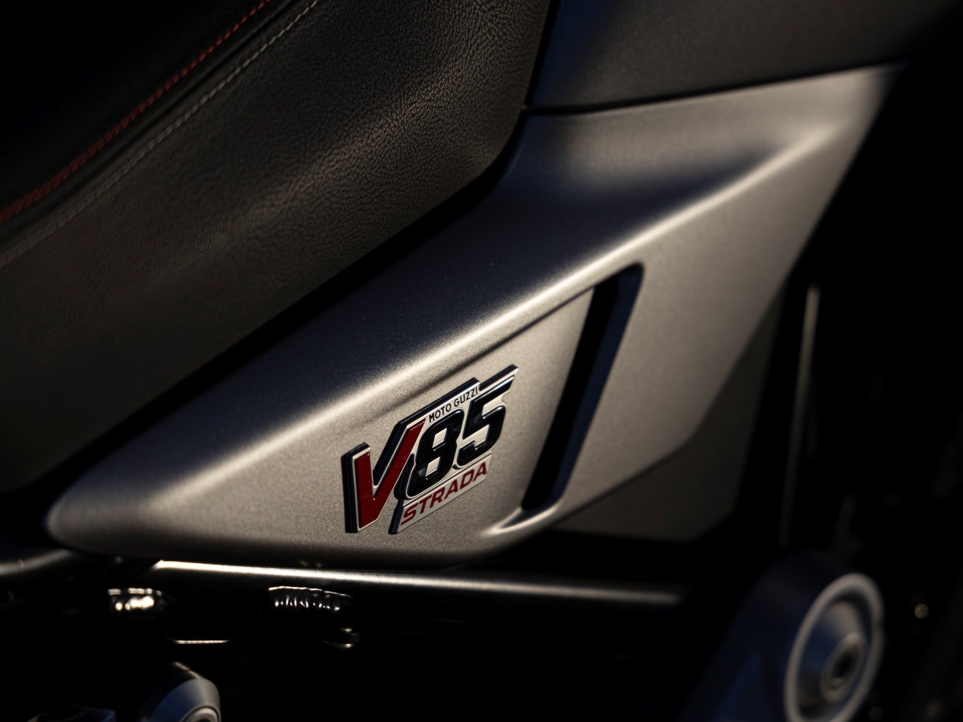 Die V85 Strada setzt mit ihrem minimalistischen Design und ohne zusätzliche Anbauteile ein Zeichen, das auf Zweckmäßigkeit ausgelegt ist, aber auch für einen kühnen, unverwechselbaren Look sorgt.