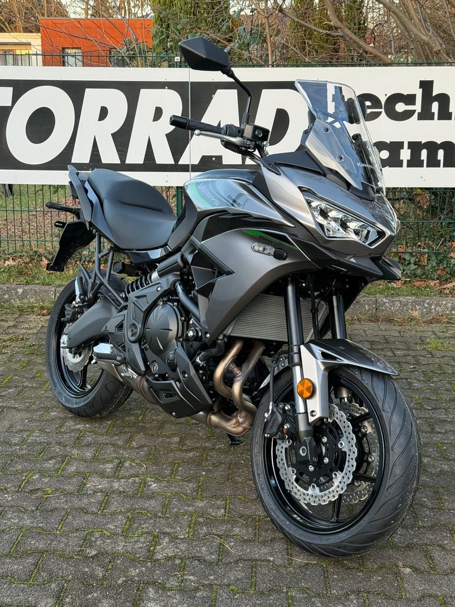 KAWASAKI VERSYS 650, Modell 2026 in grau, 49 KW, die bewährte Enduro mit 4 Jahren KAWASAKI Werksgarantie.