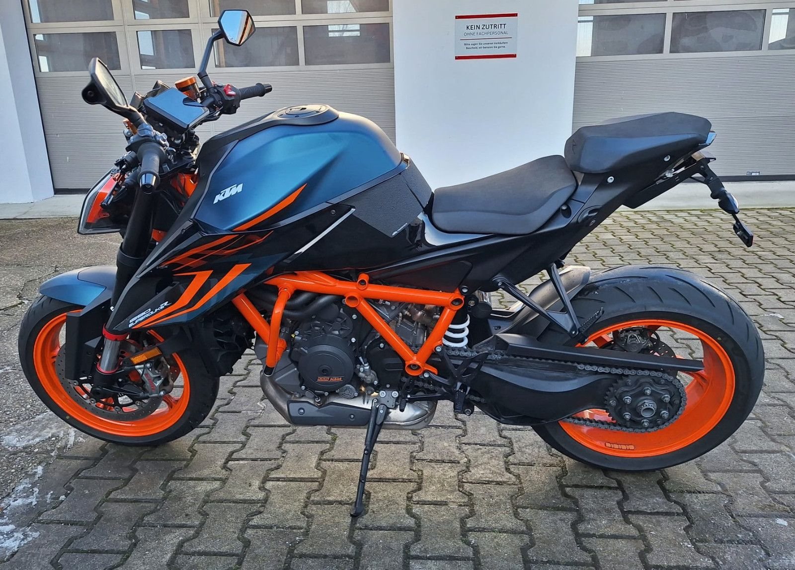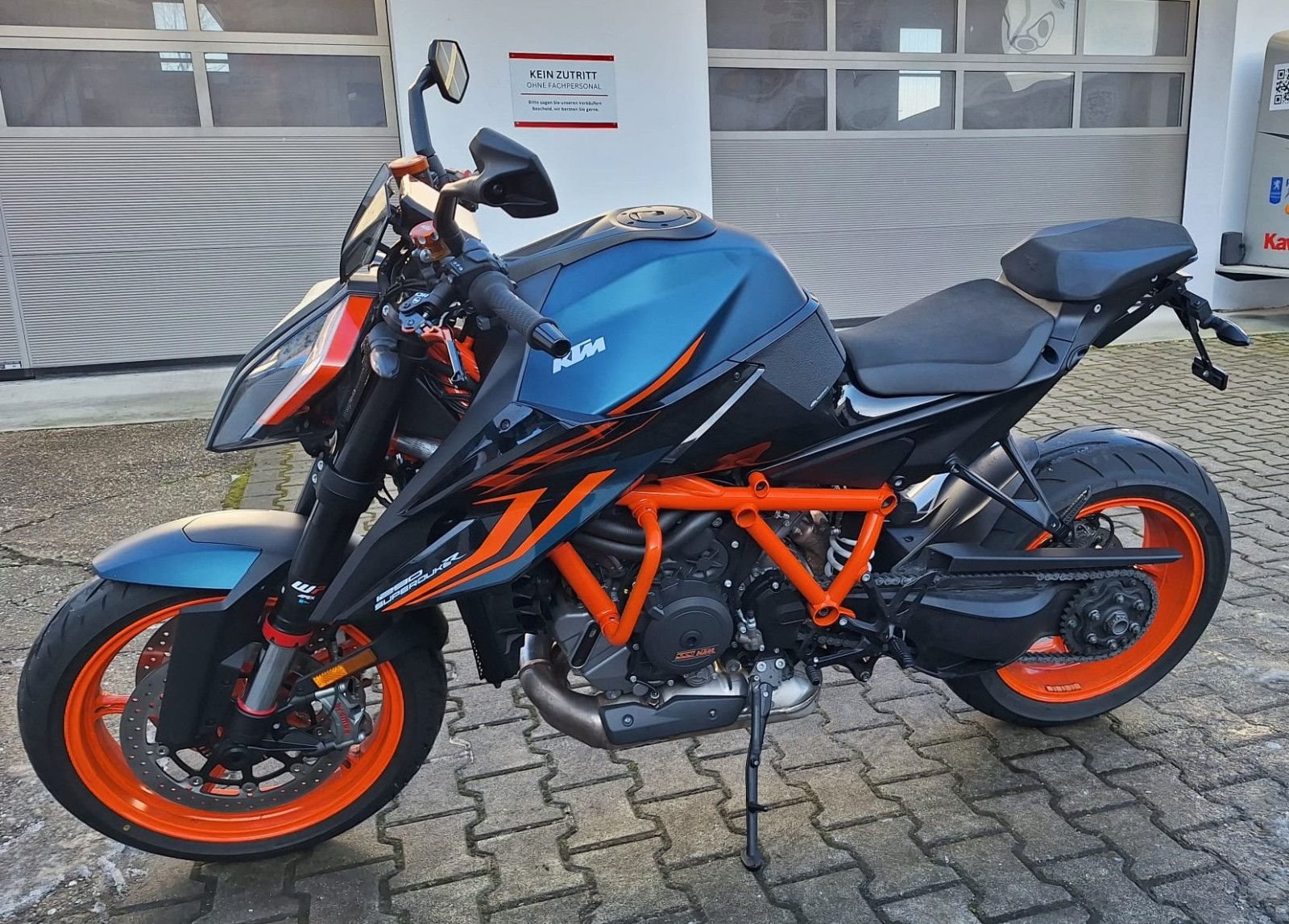 Zum Verkauf steht unsere KTM 1290 Super Duke R mit Erstzulassung im Mai 2023. Das Fahrzeug aus erster Hand ist um- und unfallfrei und befindet sich den Kilometern entsprechend in einem sehr gepflegten Zustand. Alle Services wurden bei einem KTM Vertragswerkstatt durchgeführt. Die Fahrzeuggarantie läuft dementsprechend noch bis 05/2027. Auch alle Verschleißteile befinden sich in gutem Zustand. Das unten aufgeführte, hochwertige Zubehör ist im Fahrzeugpreis inbegriffen. Zu unseren Geschäftszeiten können Sie das Fahrzeug besichtigen und nach vorheriger Absprache auch Probefahren. Bei weiteren Fragen stehen wir gerne zur Verfügung.