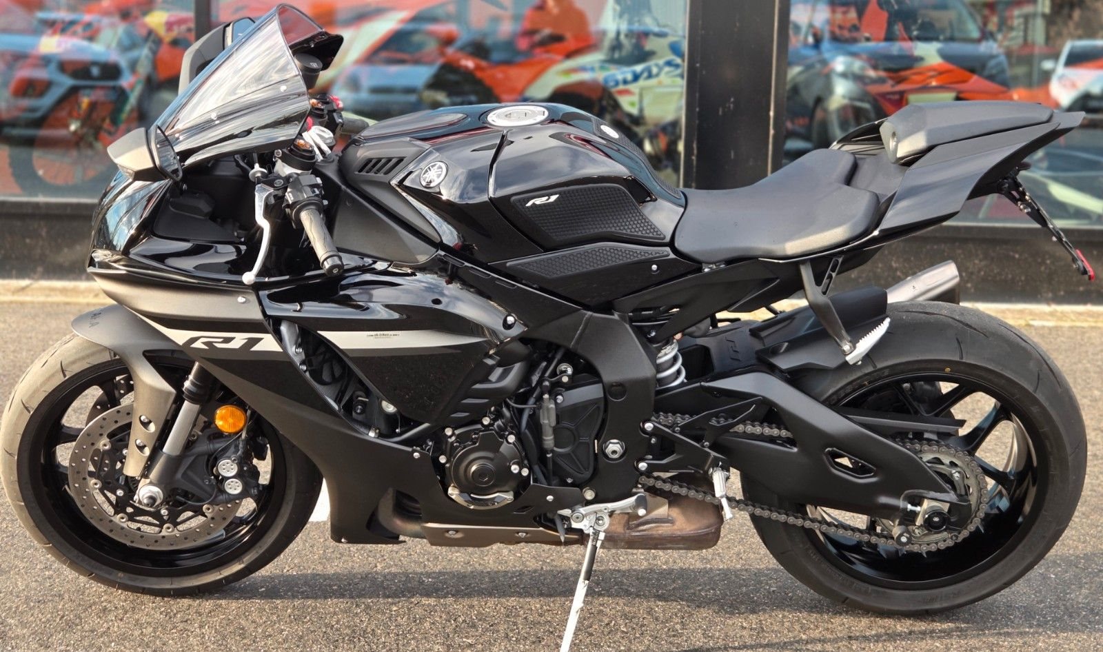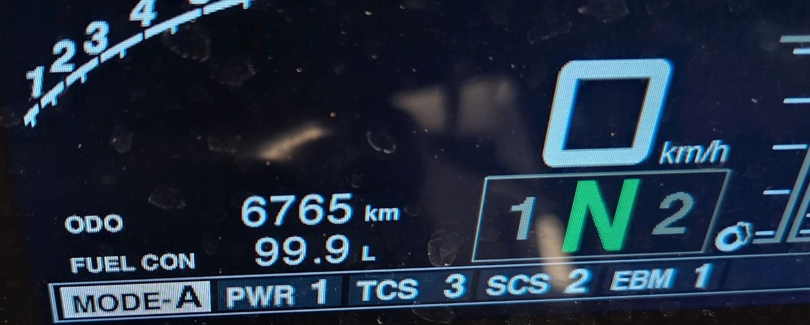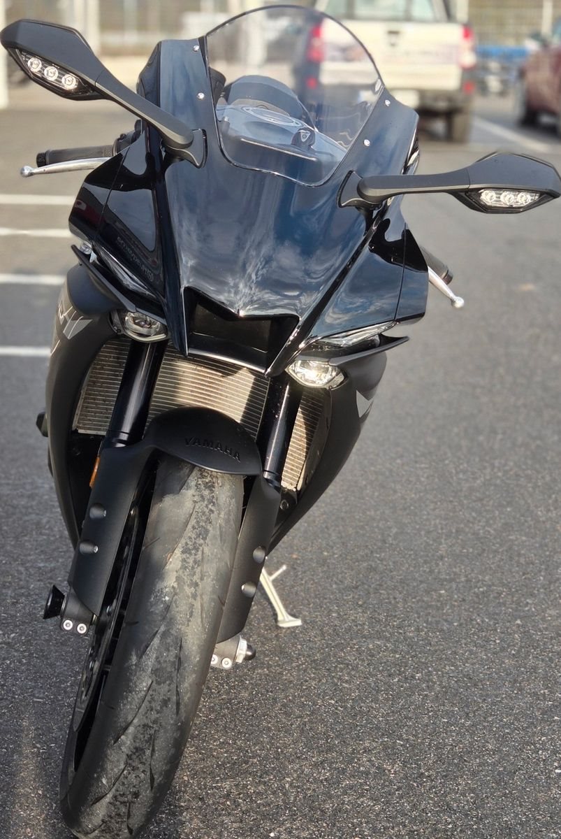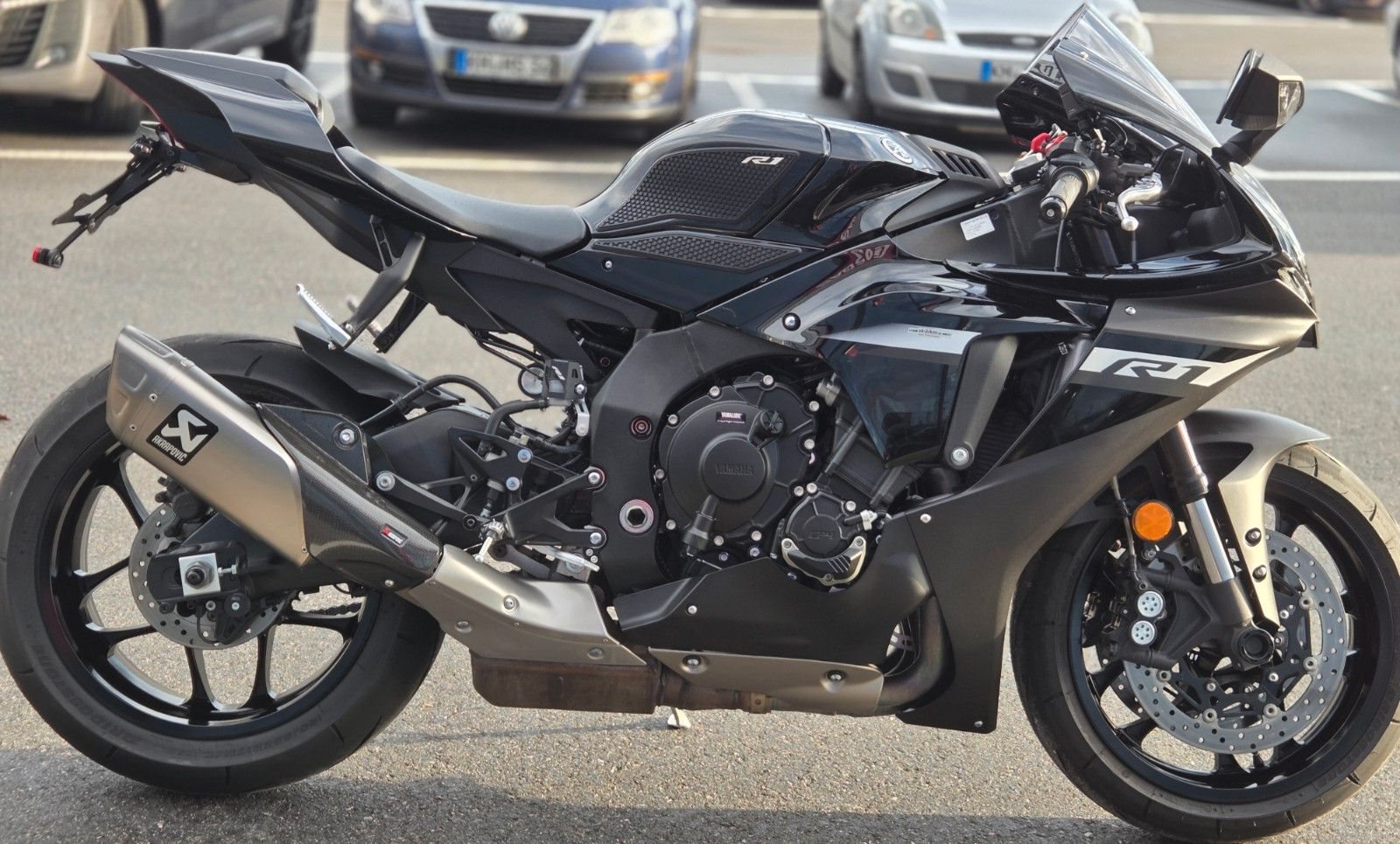 Akrapovic Auspuff, Tank- + Kniepads, Motordeckel- und Kupplungsdeckelschutz, Kurzer Kennzeichenhalter, Bremsbehälter vorne CNC, Mini Blinker vo./hi., Bobbins, Quickshifter, Laptimer, einstellbares Fahrwerk