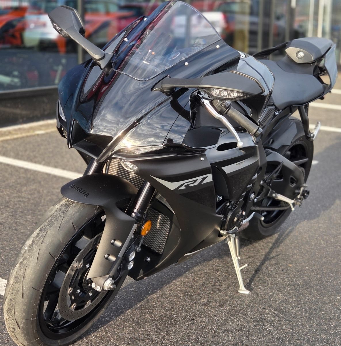 Akrapovic Auspuff, Tank- + Kniepads, Motordeckel- und Kupplungsdeckelschutz, Kurzer Kennzeichenhalter, Bremsbehälter vorne CNC, Mini Blinker vo./hi., Bobbins, Quickshifter, Laptimer, einstellbares Fahrwerk