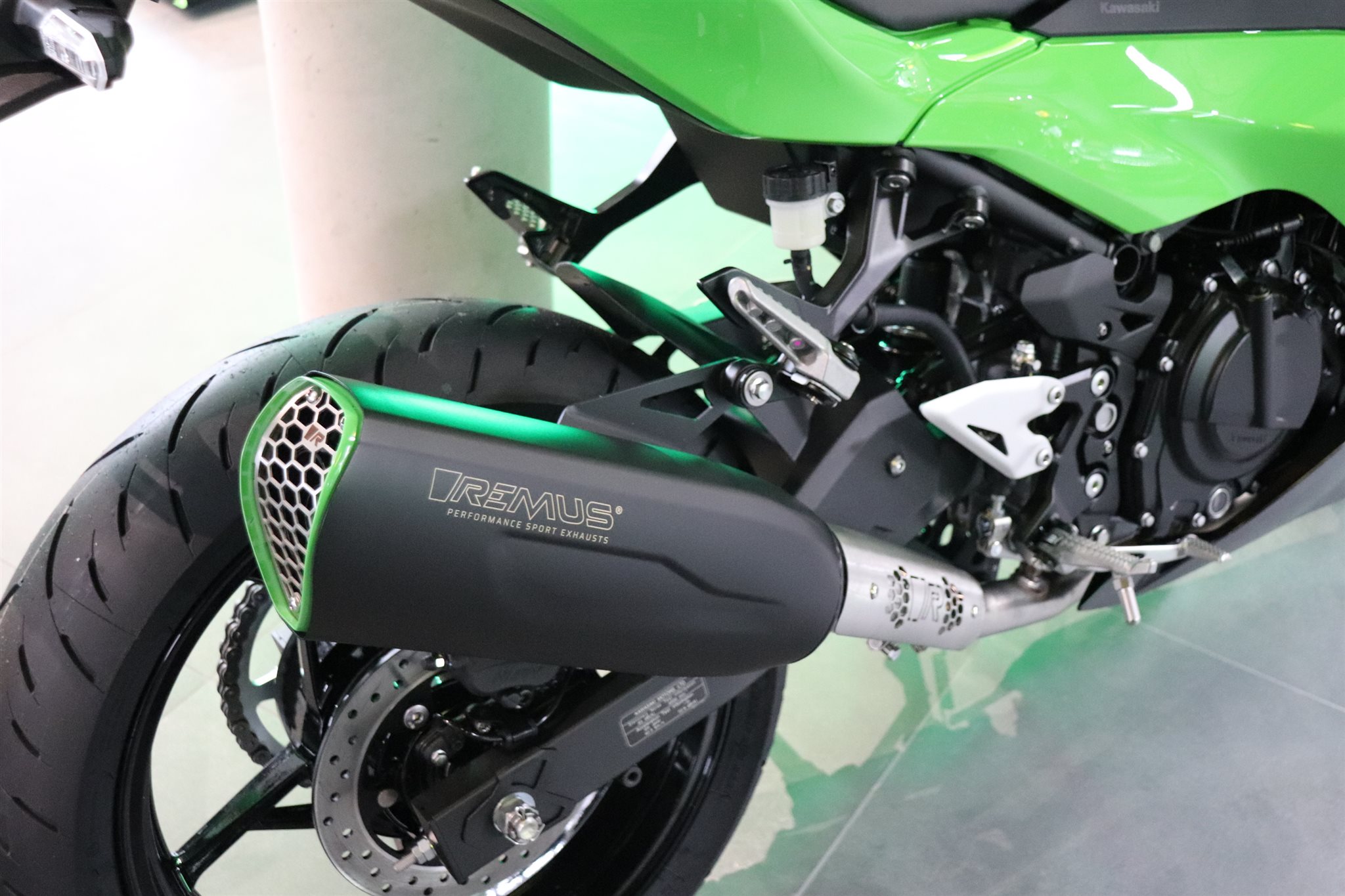 - Inkl. Perfomance Remus Edition: Soziussitzabdeckung, Lime Green, Remus Sportauspuff, Große getönte Windschutzscheibe, Kawasaki Schlüsselanhänger, Tankpad, Displayschutzfolie