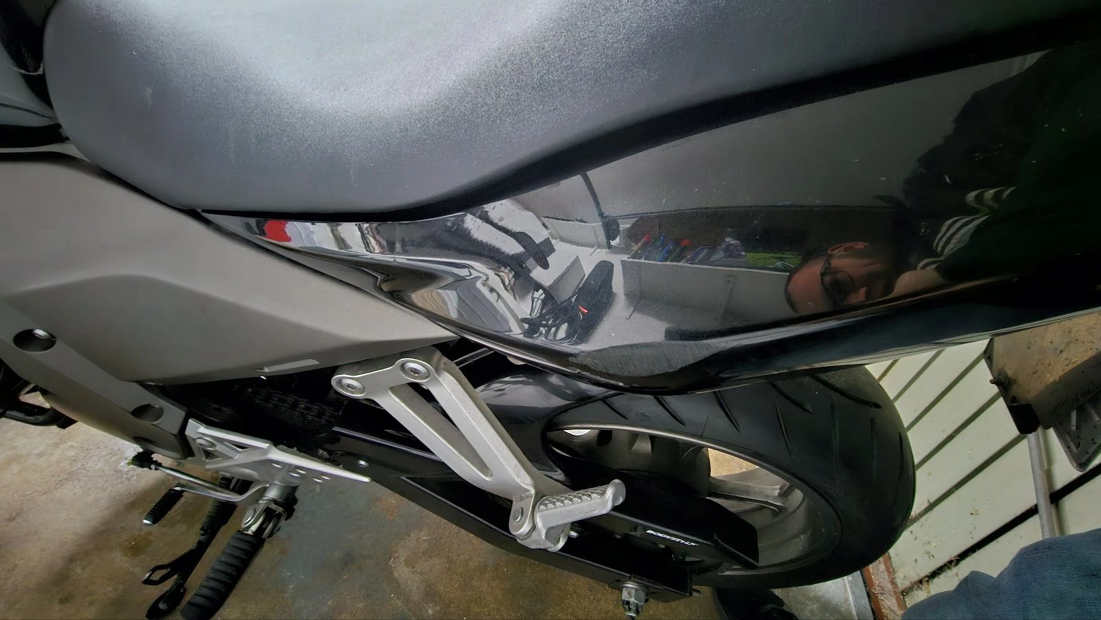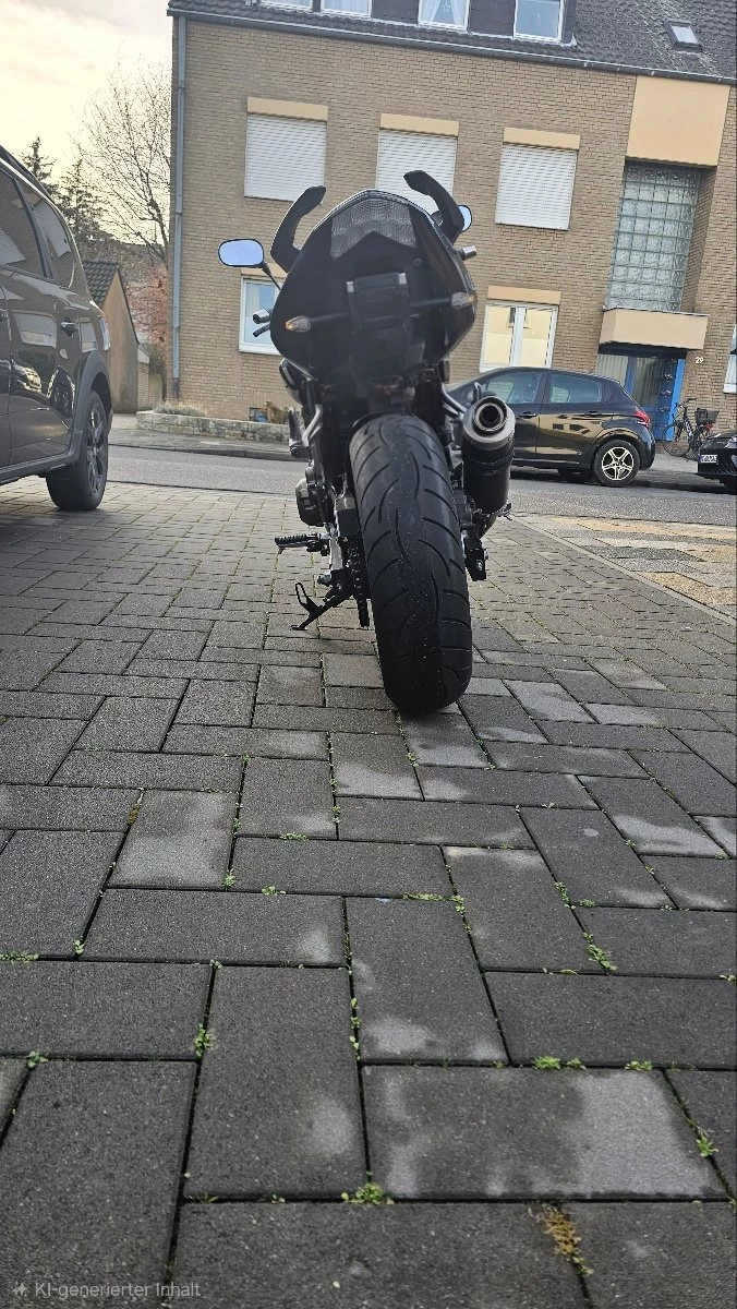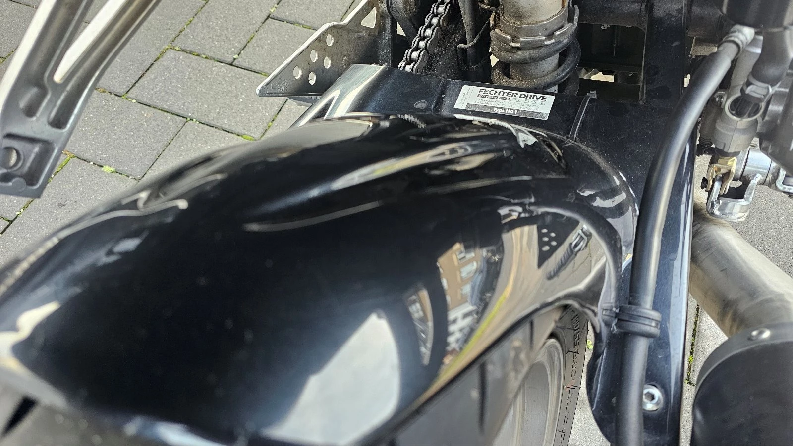 Es ist ein Hashiro Auspuff verbaut mit einem sagenhaftem Klang Bild der originale Auspuff kann mitgeben werden desweiteren ist eine MRA Scheibe und Spiegler Brems und Kupplungshebel verbaut.