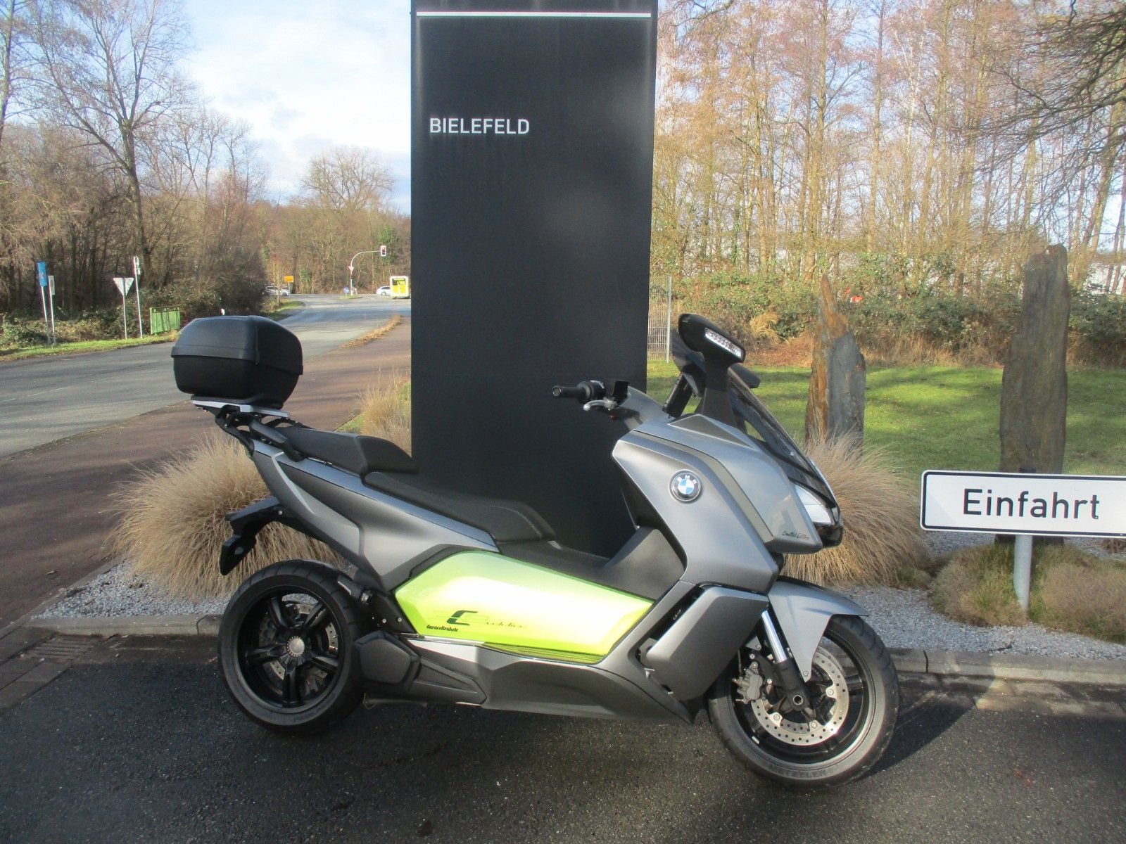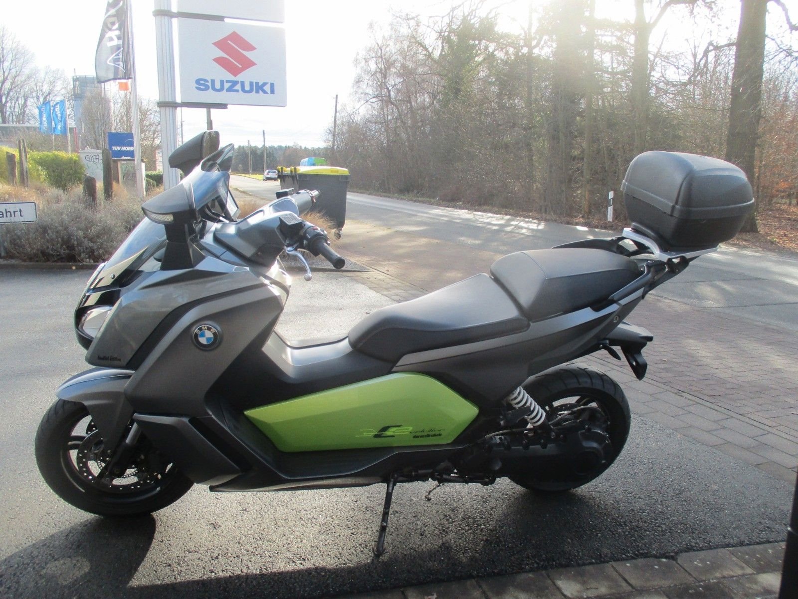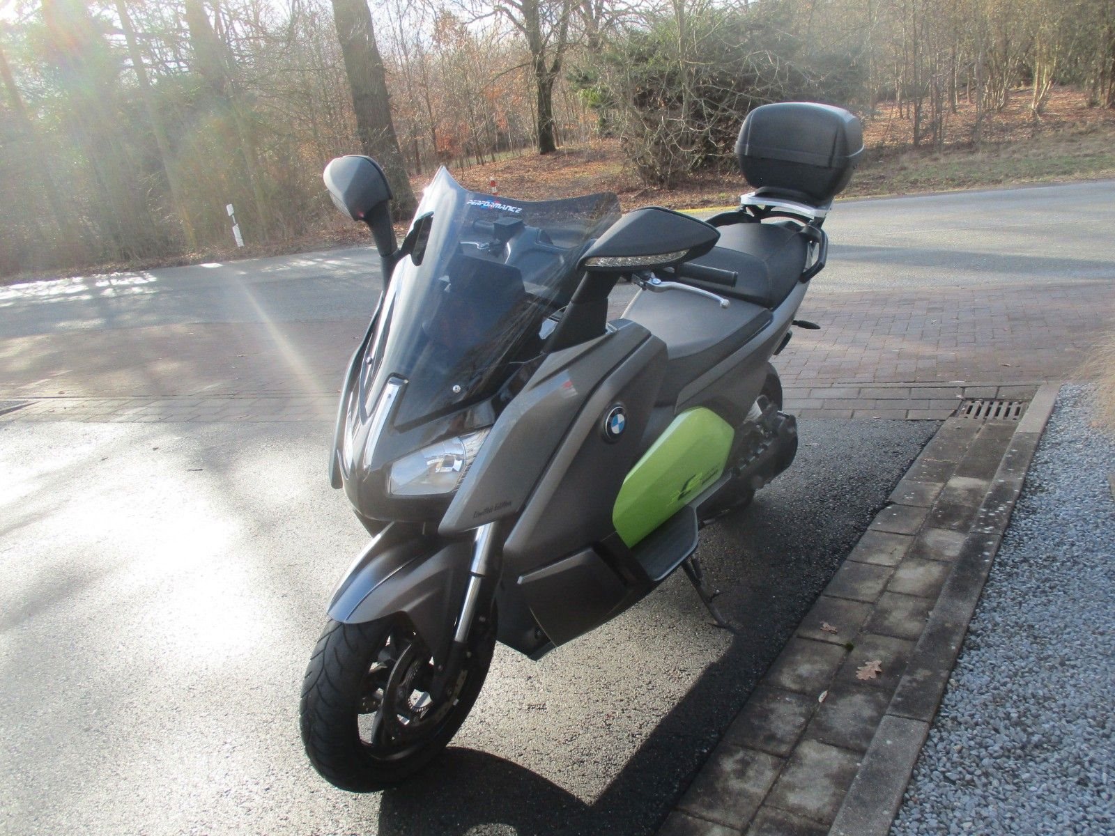 • Der BMW C Evolution aus dem Jahr 2014 wurde ursprünglich in der Farbkombination "Light white uni" mit Akzenten in "Electric green" ausgeliefert. Das Fahrzeug wurde durch den Vorbesitzer in Grau foliert