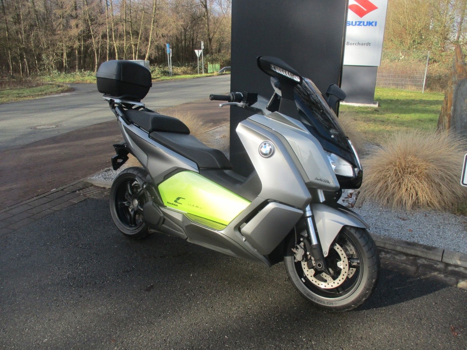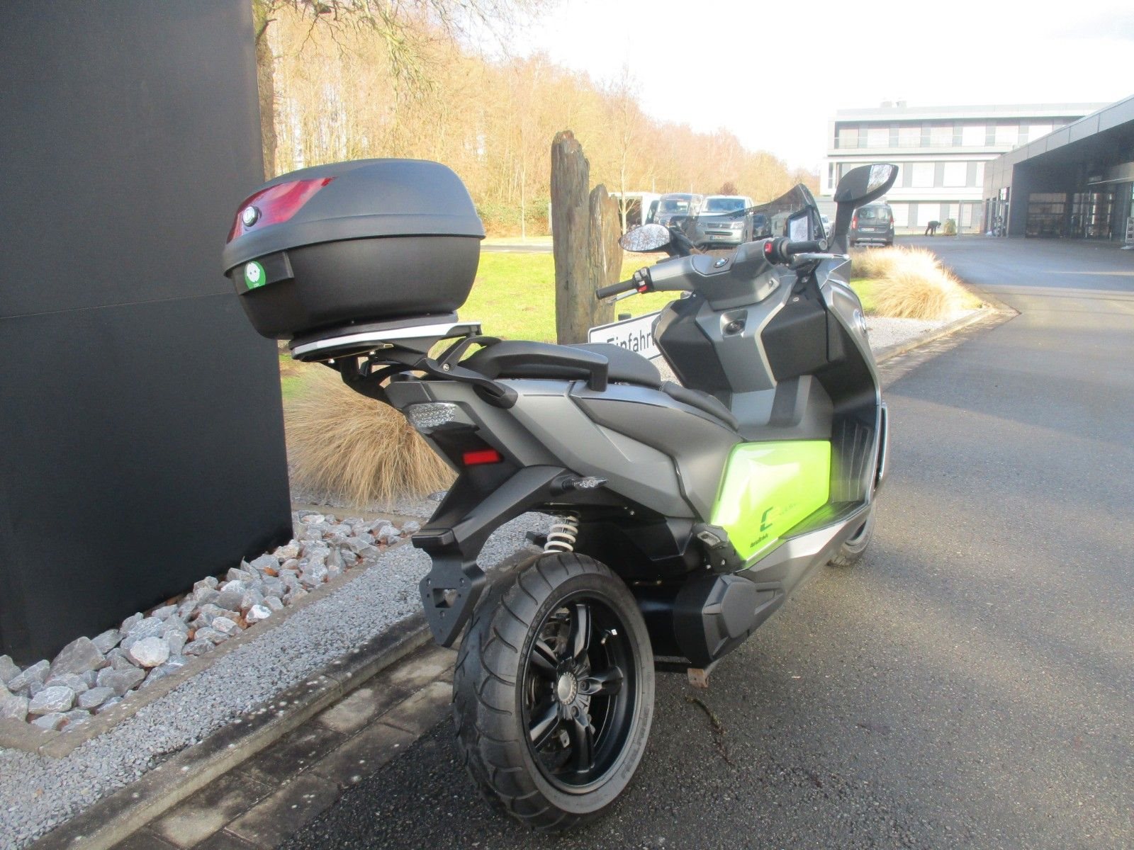 - Der BMW C Evolution aus dem Jahr 2014 wurde ursprünglich in der Farbkombination "Light white uni" mit Akzenten in "Electric green" ausgeliefert. Das Fahrzeug wurde durch den Vorbesitzer in Grau foliert