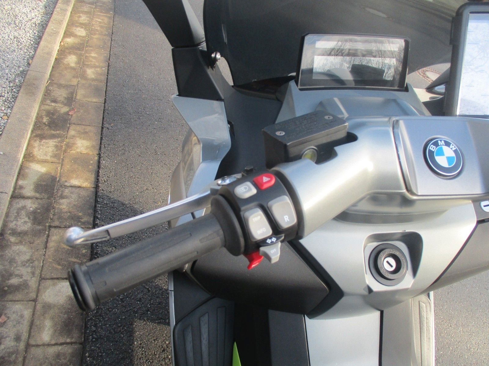 - Der BMW C Evolution aus dem Jahr 2014 wurde ursprünglich in der Farbkombination "Light white uni" mit Akzenten in "Electric green" ausgeliefert. Das Fahrzeug wurde durch den Vorbesitzer in Grau foliert