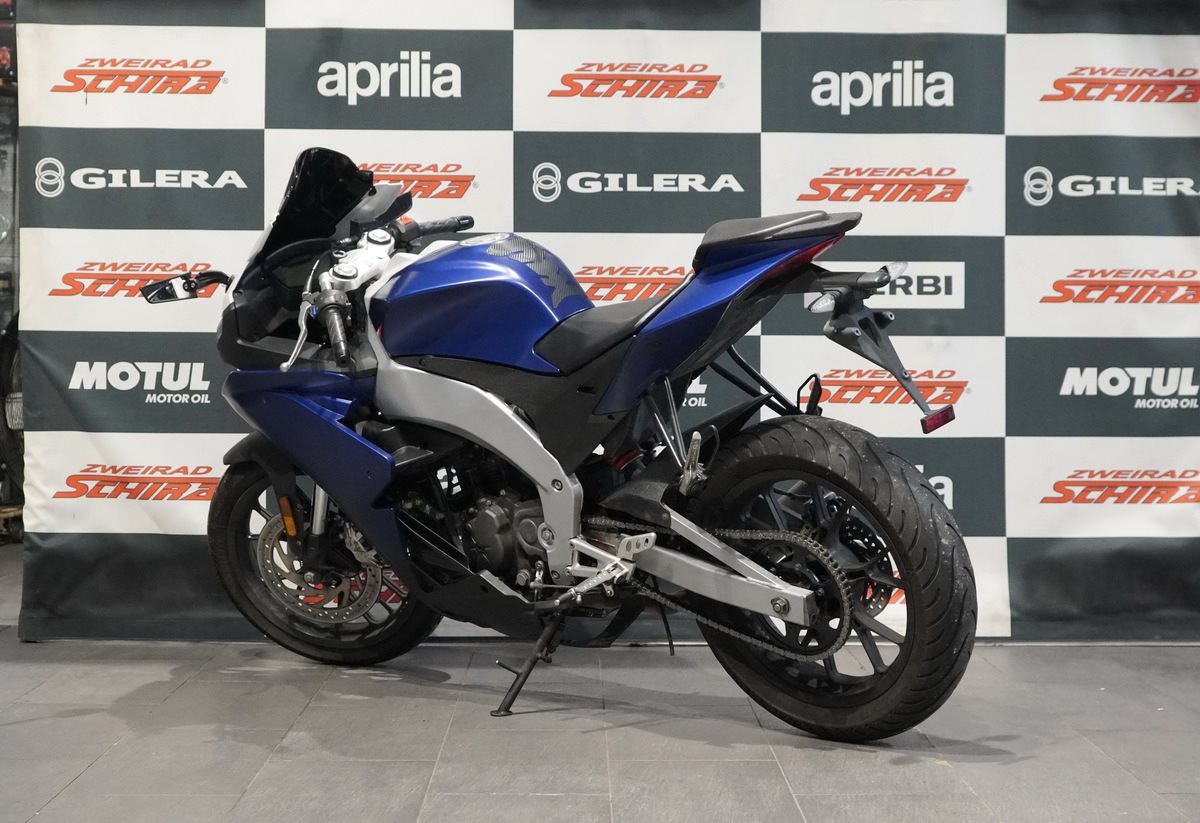 Der Halblenker der RS 125 ist nun um 18 mm höher montiert, was dem Fahrkomfort zugutekommt, ohne jedoch die bekannten Qualitäten in sportlichsten Fahrsituationen zu beeinträchtigen. Teil des Designs bleibt auch 2021 der lackierte Alurahmen der beiden Varianten: