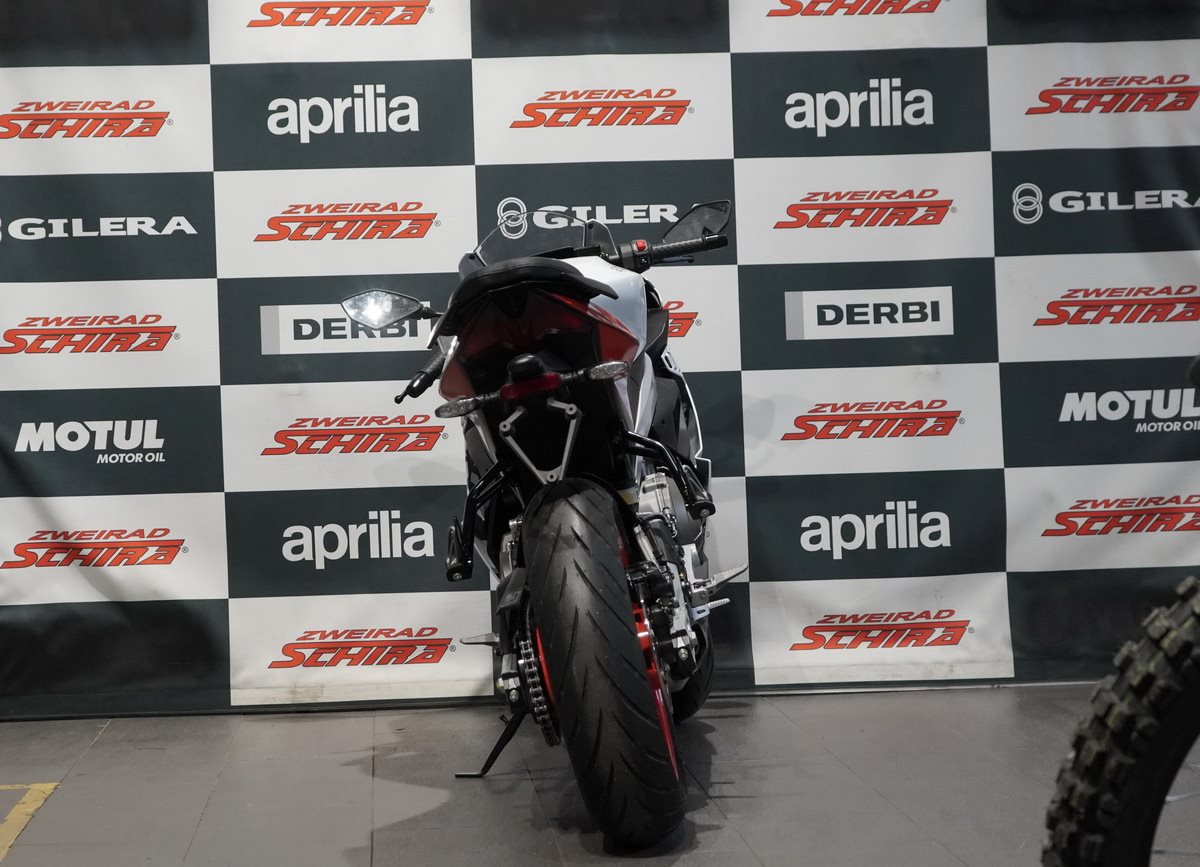 Die Aprilia Tuono 457 wird von einem modernen 457 cm3 Zweizylindermotor mit tragender Funktion angetrieben - ein echtes Technologiejuwel aus dem Hause Aprilia, bewusst offen sichtbar gelassen. Das hochmoderne, flüssigkeitsgekühlte Triebwerk liefert eine maximale Leistung von 35 kW (47,6 PS) bei 9.400 U/min - das Maximum, das mit A2-Führerschein gefahren werden darf. Rekordverdächtige Performance für einen Parallel-Twin dieser Hubraumklasse, unterstützt durch Premium-Elektronik mit Ride-by-Wire und drei Riding Modes (ECO, SPORT und RAIN), die Leistung, Drehmoment und Traktionskontrolle optimieren - letztere ist sogar während der Fahrt in drei Stufen einstellbar.