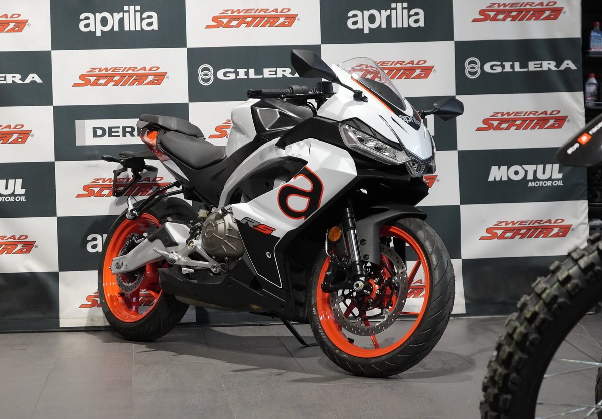Die Aprilia Tuono 457 wird von einem modernen 457 cm3 Zweizylindermotor mit tragender Funktion angetrieben - ein echtes Technologiejuwel aus dem Hause Aprilia, bewusst offen sichtbar gelassen. Das hochmoderne, flüssigkeitsgekühlte Triebwerk liefert eine maximale Leistung von 35 kW (47,6 PS) bei 9.400 U/min - das Maximum, das mit A2-Führerschein gefahren werden darf. Rekordverdächtige Performance für einen Parallel-Twin dieser Hubraumklasse, unterstützt durch Premium-Elektronik mit Ride-by-Wire und drei Riding Modes (ECO, SPORT und RAIN), die Leistung, Drehmoment und Traktionskontrolle optimieren - letztere ist sogar während der Fahrt in drei Stufen einstellbar.