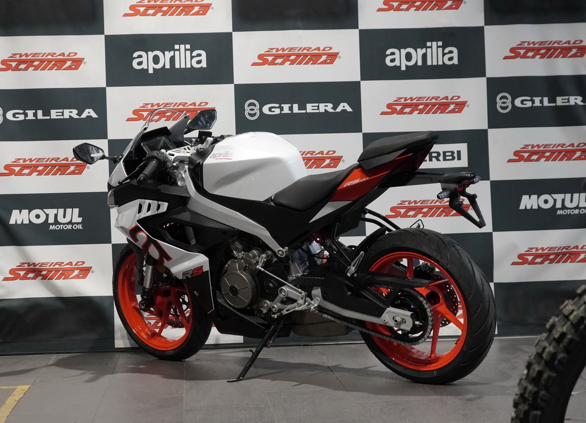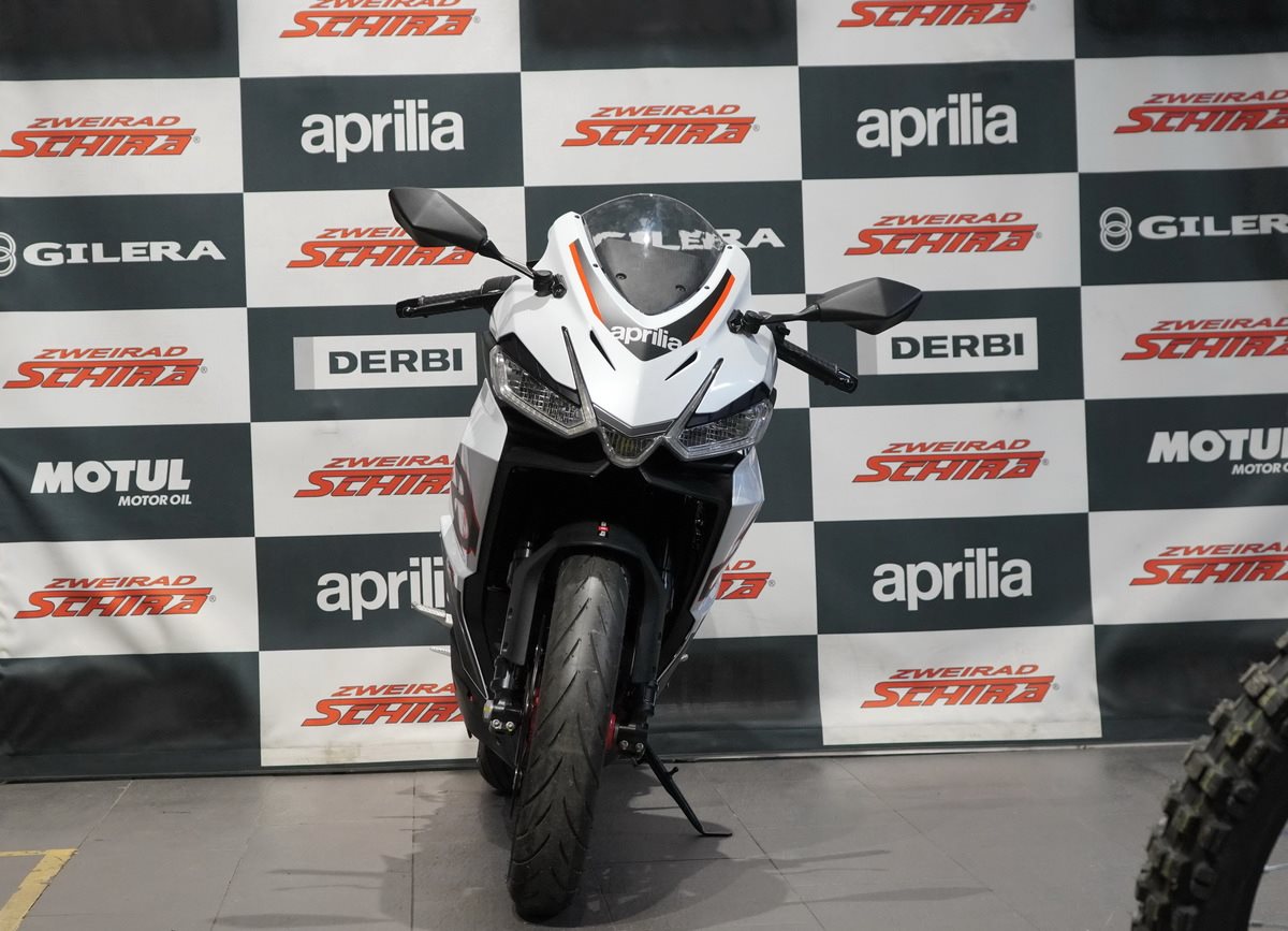 Die Aprilia Tuono 457 wird von einem modernen 457 cm3 Zweizylindermotor mit tragender Funktion angetrieben - ein echtes Technologiejuwel aus dem Hause Aprilia, bewusst offen sichtbar gelassen. Das hochmoderne, flüssigkeitsgekühlte Triebwerk liefert eine maximale Leistung von 35 kW (47,6 PS) bei 9.400 U/min - das Maximum, das mit A2-Führerschein gefahren werden darf. Rekordverdächtige Performance für einen Parallel-Twin dieser Hubraumklasse, unterstützt durch Premium-Elektronik mit Ride-by-Wire und drei Riding Modes (ECO, SPORT und RAIN), die Leistung, Drehmoment und Traktionskontrolle optimieren - letztere ist sogar während der Fahrt in drei Stufen einstellbar.