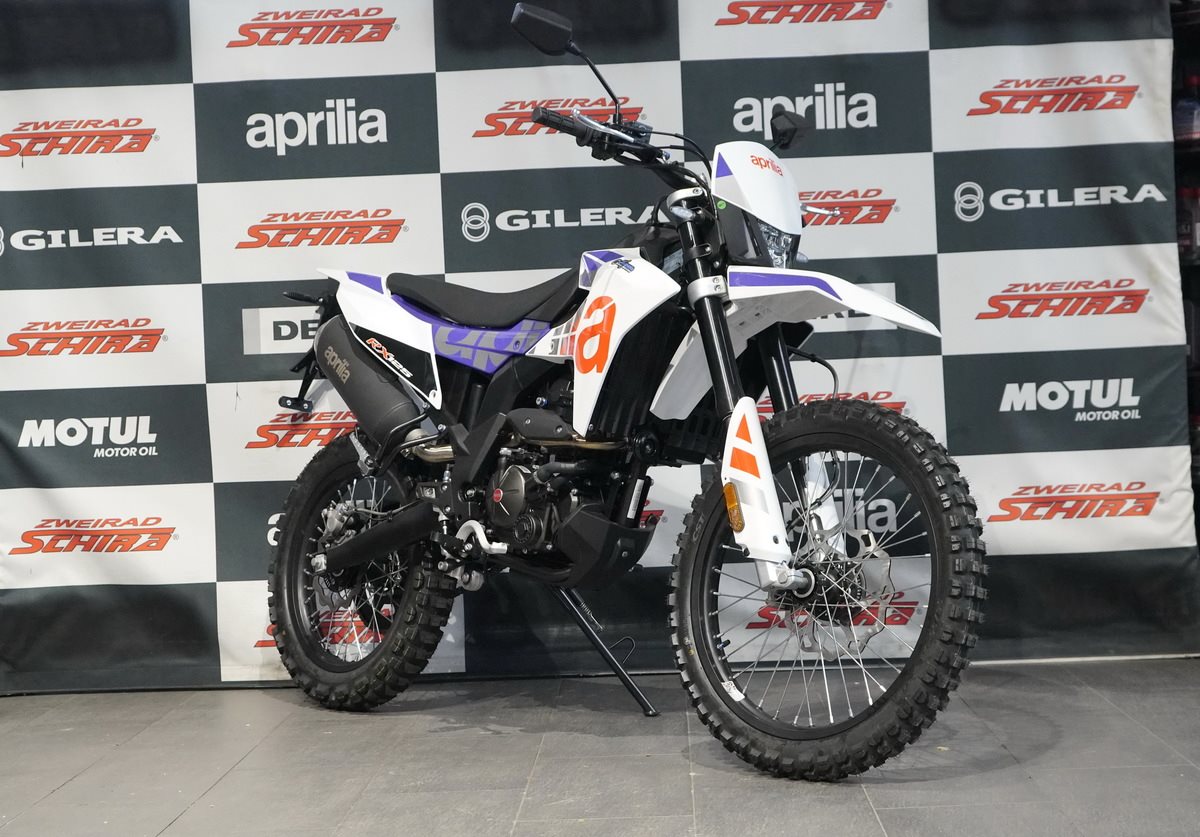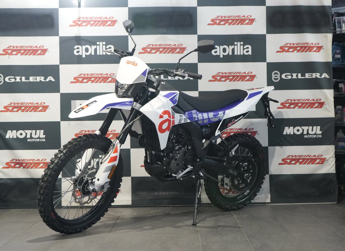 Die Aprilia RX 125 ist mit einer Technologie ausgestattet, die für mehr Vielseitigkeit und Fahrspaß in jeder Situation sorgt. Neben einer Full-LED-Lichtanlage verfügt sie über ein digitales Farbdisplay, das alle wichtigen Informationen für den Fahrer anzeigt. Abgerundet wird das Paket durch ein Staufach unter der Sitzbank, das für einen als Zubehör erhältlichen USB-Ladeanschluss ausgelegt ist.