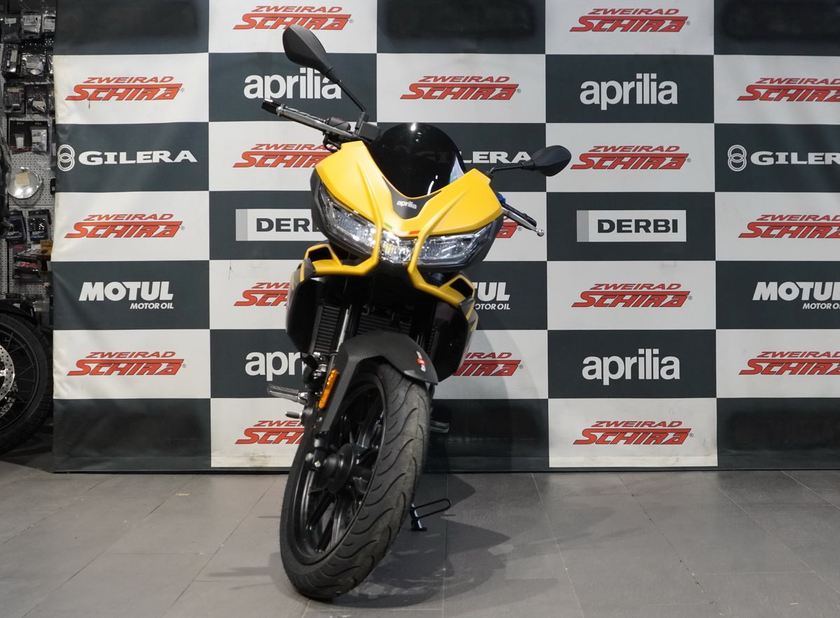 Die Aprilia Tuono 125 sorgt für sofortigen Vortrieb - dank des flüssigkeitsgekühlten Euro-5+-Einzylindermotors mit Vierventiltechnik, der 11 kW bei 10.500 U/min und 11,4 Nm bei 8.500 U/min liefert. Die Motorleistung trifft auf ein präzises Bremssystem mit Zweikanal-ABS - entwickelt in Zusammenarbeit mit Bosch - sowie eine (abschaltbare) Traktionskontrolle, das für maximale Sicherheit und Stabilität sorgt. Für noch schnellere Gangwechsel ist die Tuono 125 bereits für den optionalen elektronischen Quickshifter vorbereitet.