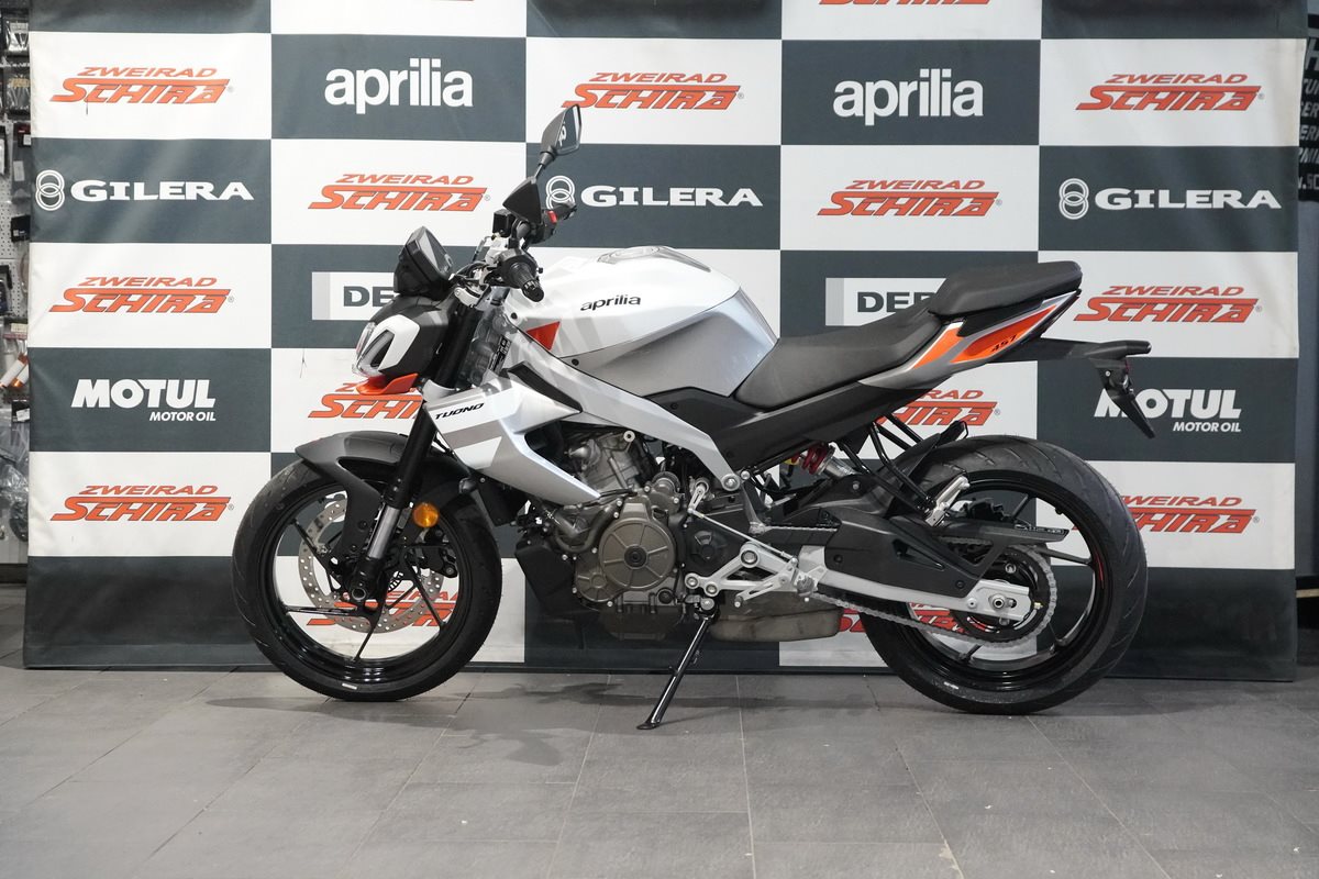 Die Aprilia Tuono 457 wird von einem modernen 457 cm3 Zweizylindermotor mit tragender Funktion angetrieben - ein echtes Technologiejuwel aus dem Hause Aprilia, bewusst offen sichtbar gelassen. Das hochmoderne, flüssigkeitsgekühlte Triebwerk liefert eine maximale Leistung von 35 kW (47,6 PS) bei 9.400 U/min - das Maximum, das mit A2-Führerschein gefahren werden darf. Rekordverdächtige Performance für einen Parallel-Twin dieser Hubraumklasse, unterstützt durch Premium-Elektronik mit Ride-by-Wire und drei Riding Modes (ECO, SPORT und RAIN), die Leistung, Drehmoment und Traktionskontrolle optimieren - letztere ist sogar während der Fahrt in drei Stufen einstellbar.