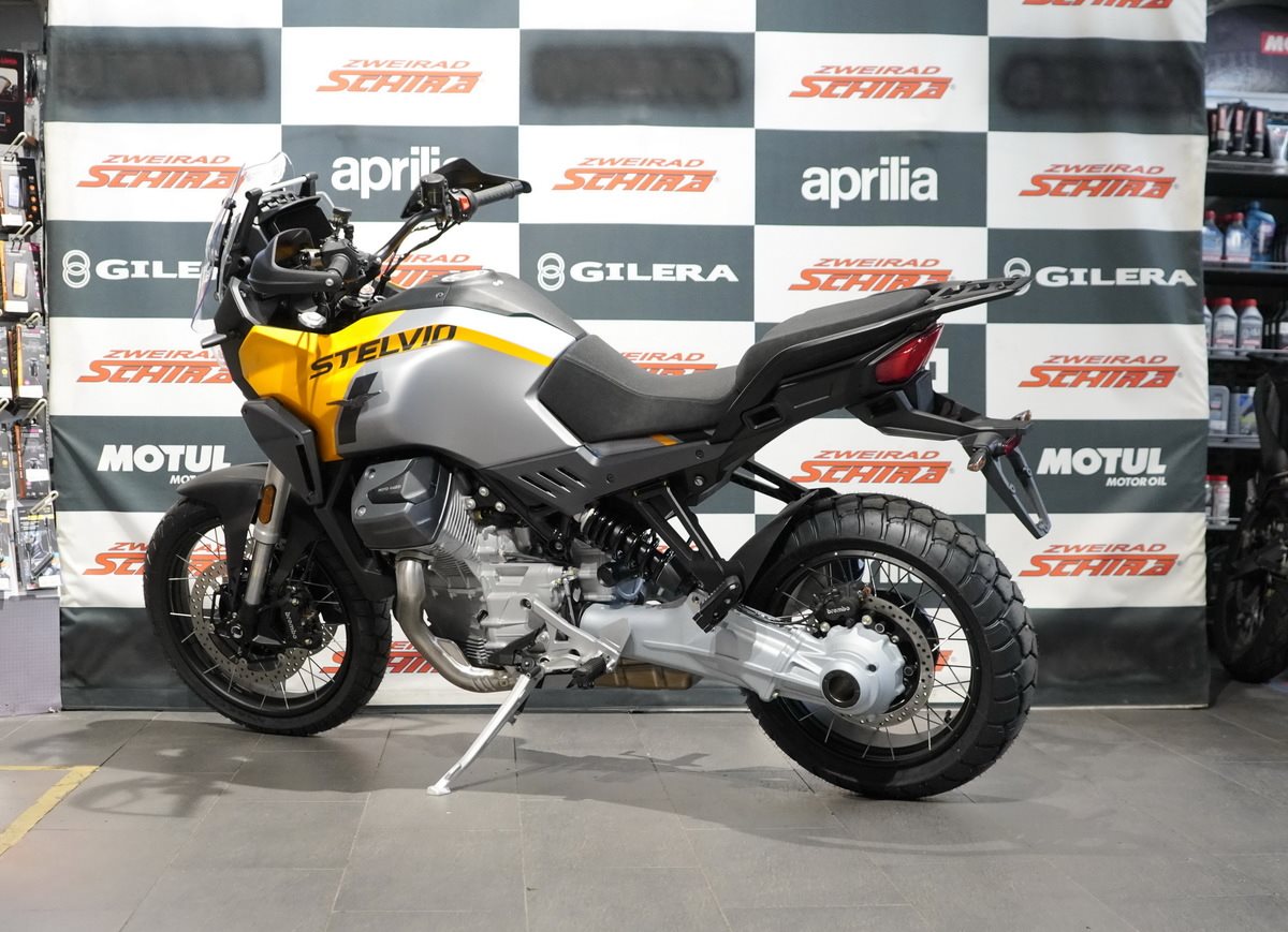 Komfort findet sich in jedem Detail des Stelvio und keine Straße ist tabu, unabhängig von der Beladung. Dank des 19-Zoll-Vorderrads, des 170-mm-Federwegs, der geräumigen Sitzbank, die moderate 830 mm über dem Boden liegt, des elektrisch verstellbaren Windschilds.